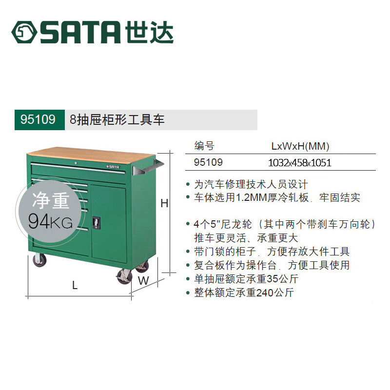 Shida Adplaware 8 ящик для мобильного инструмента Mobile Tool Multi -Functional Auto Repair Manertain Pactors Cart 95109