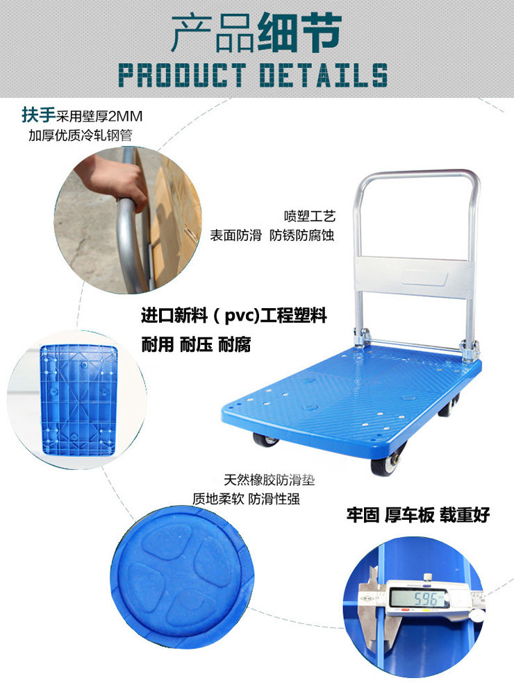 Бортовой грузовик, складной прицеп, тележка на четырех колесах для домашнего использования, увеличенная толщина