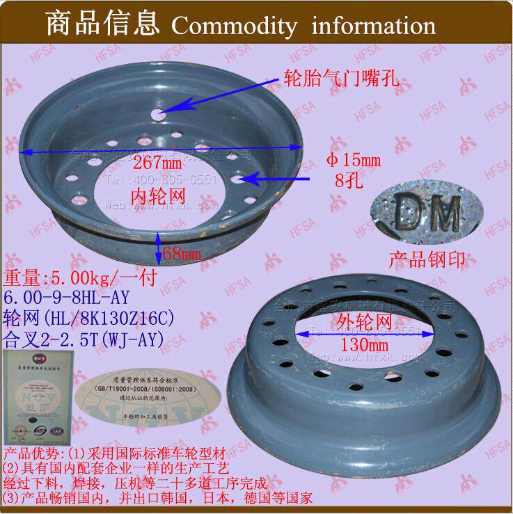 Вилочное круглое круглое круглое круглое круглое круглое круговое колесо 辋 6.00-9-8HL-AY Forma 2-2.5T Split Angel Annage