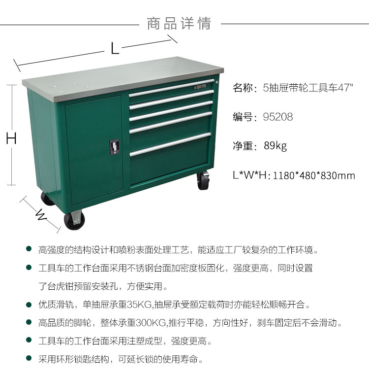 Шида инструмент для инструментов 5 ящик с колесами мобильного инструмента, автомобильный мастерская автомобиль автоматической ремонт шкаф 47 -INCH 95208