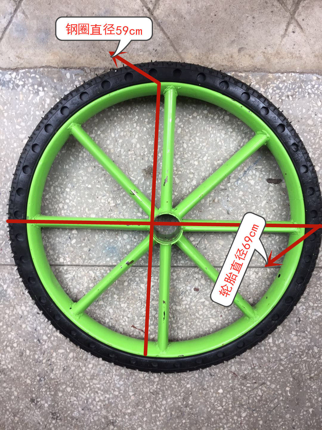 Тип 26 -тип диаметром стального кольца с сердечным колесом составляет 59 см, плюс твердый наружный диаметр шины 68 см, ширина ширины 6 см,Подшипник модель 6206
