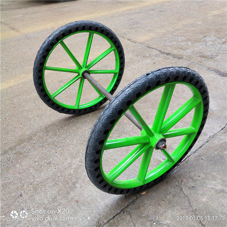 Содержит набор: колесо*2 80 см Полой вал 6206 Высоко -качественный подшипник*4 гайки.(Сплошные шины были установлены в стальном круге, не нужно устанавливать их для покупателей)
