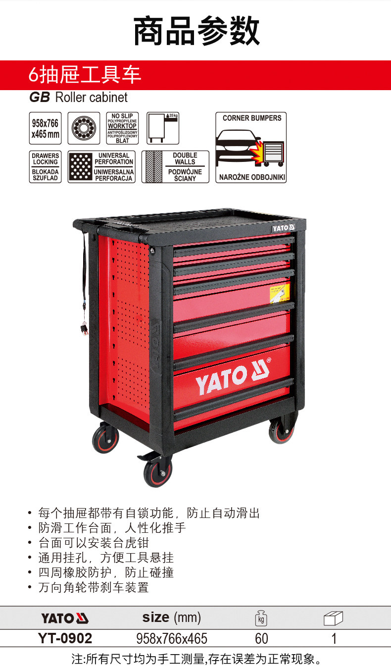 Ilgo Yato Six Drawer Tool Car с колесным шкафом для инструмента для обслуживания автомобиля Car Cart YT-0902