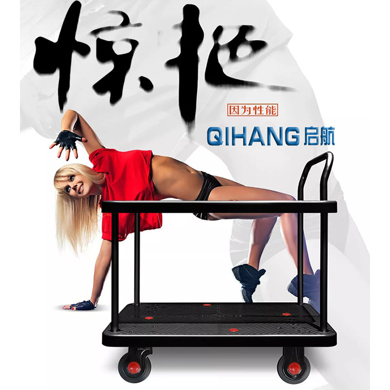 Qihanglian и Porter Black Car Plate Mute Trolley, высокая платтная грузовик, двухслойная тележка инструментов