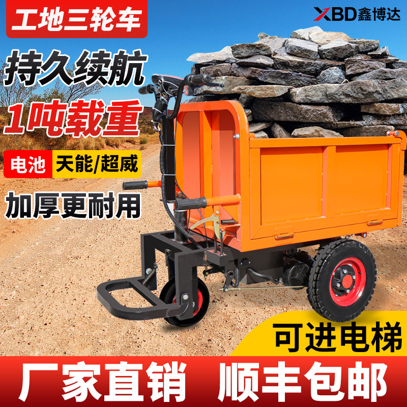 Строительная площадка трехколесного велосипеда -на толчке серого ковша грузовой цемент.