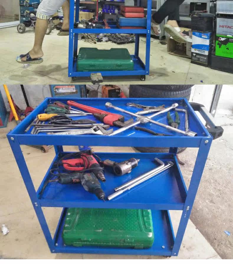 Тяжелая тележка для инструментов, тележка для ремонта и обслуживания автомобилей, утолщенная большая трехслойная стойка для инструментов, многофункциональная мастерская по обороту деталей