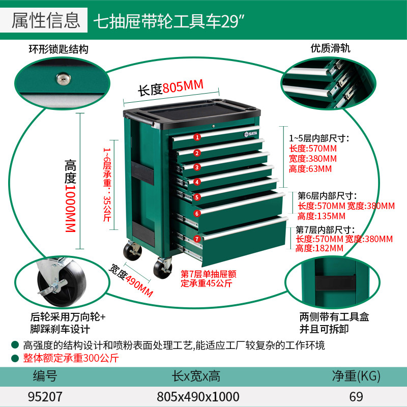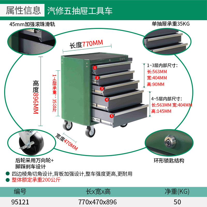 Shida Auto Repair Tool Mafence Five -Drawer Tool Sainet 95111/95121/95123/95207/95222A