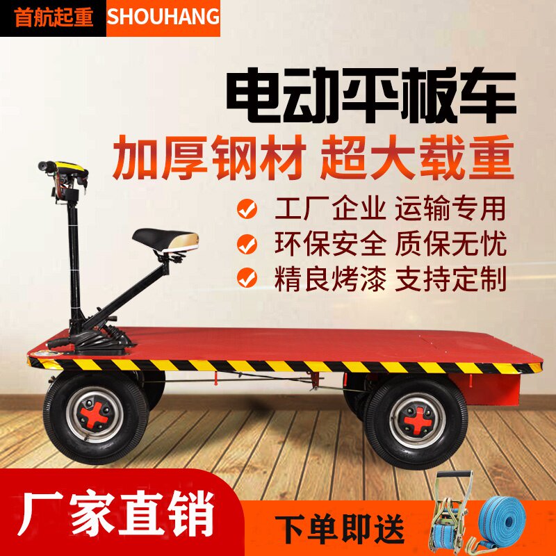 Электрический плоский автомобиль с обработкой автомобиля Четырех -склада на складе склада транспортного автомобиля. Аккумуляторная батарея нагружен грузовик, загруженный рукой короля, чтобы протолкнуть катание.