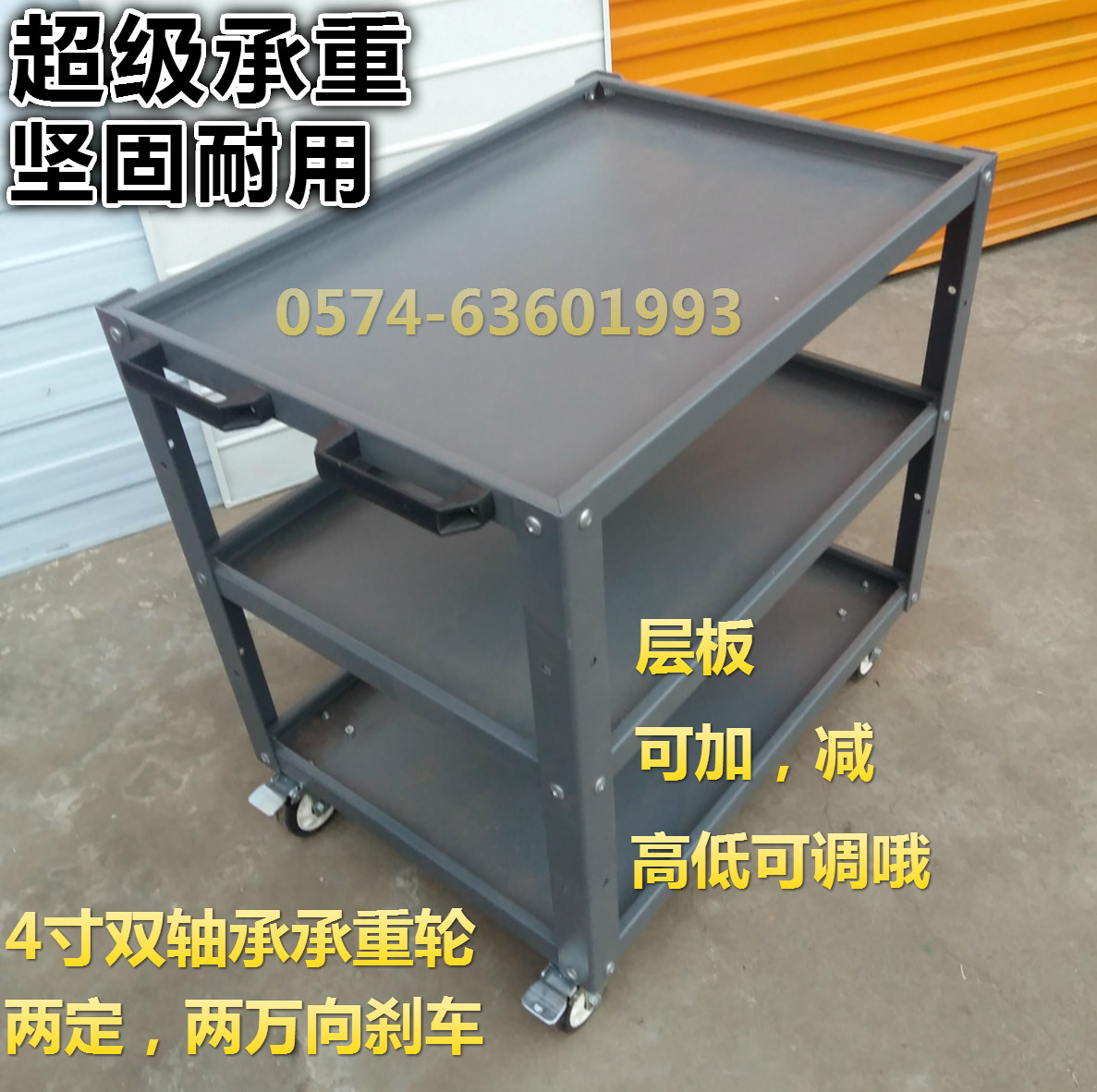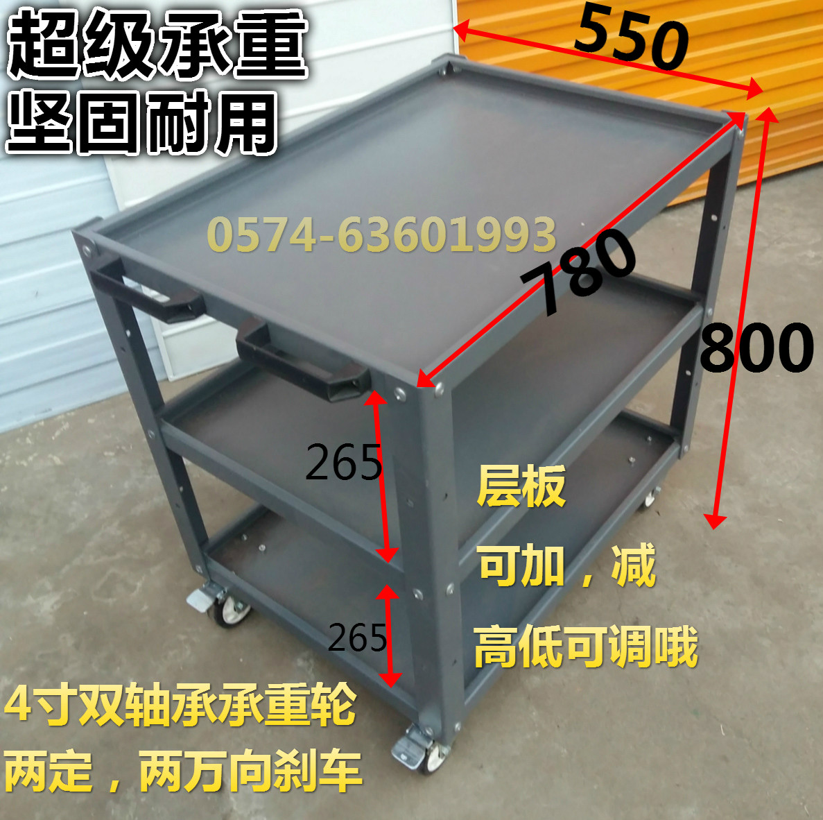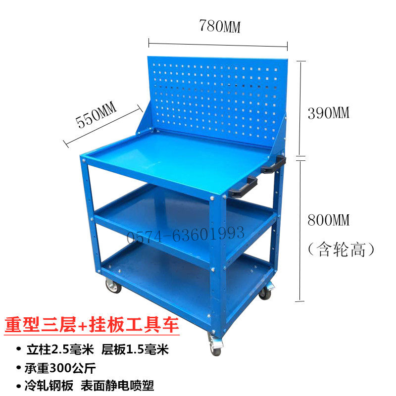- Синий 780*500*800 Тяжелая трехслойная тележка с тяжелым тормозом