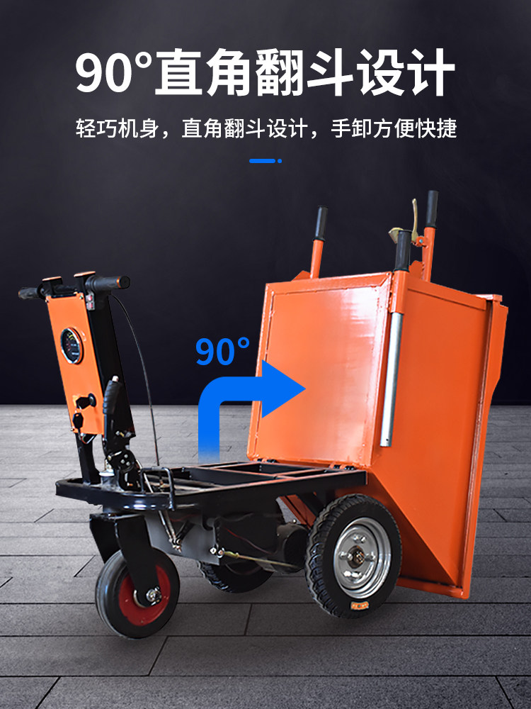 Строительная площадка Электрическая серая ковша автомобильная сельскохозяйственная сельскохозяйственная рука, перевернутая автомобиль навоз и навоз и тройные велосипеды в помещении