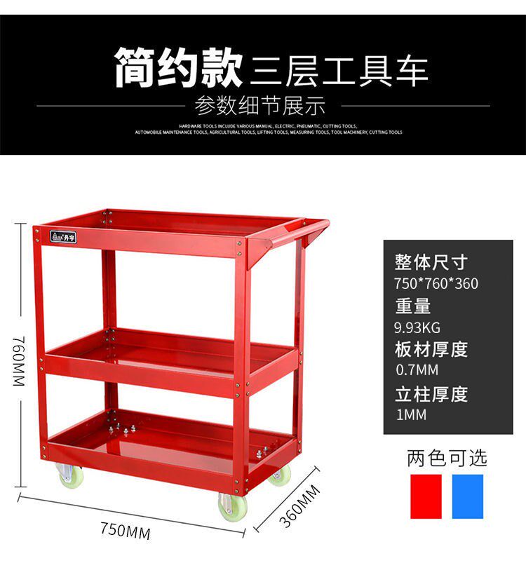 Инструментальный автомобиль небольшие полки хранения тележки с тремя слоистыми многопрофессиональными ремонтными ящиками -типом