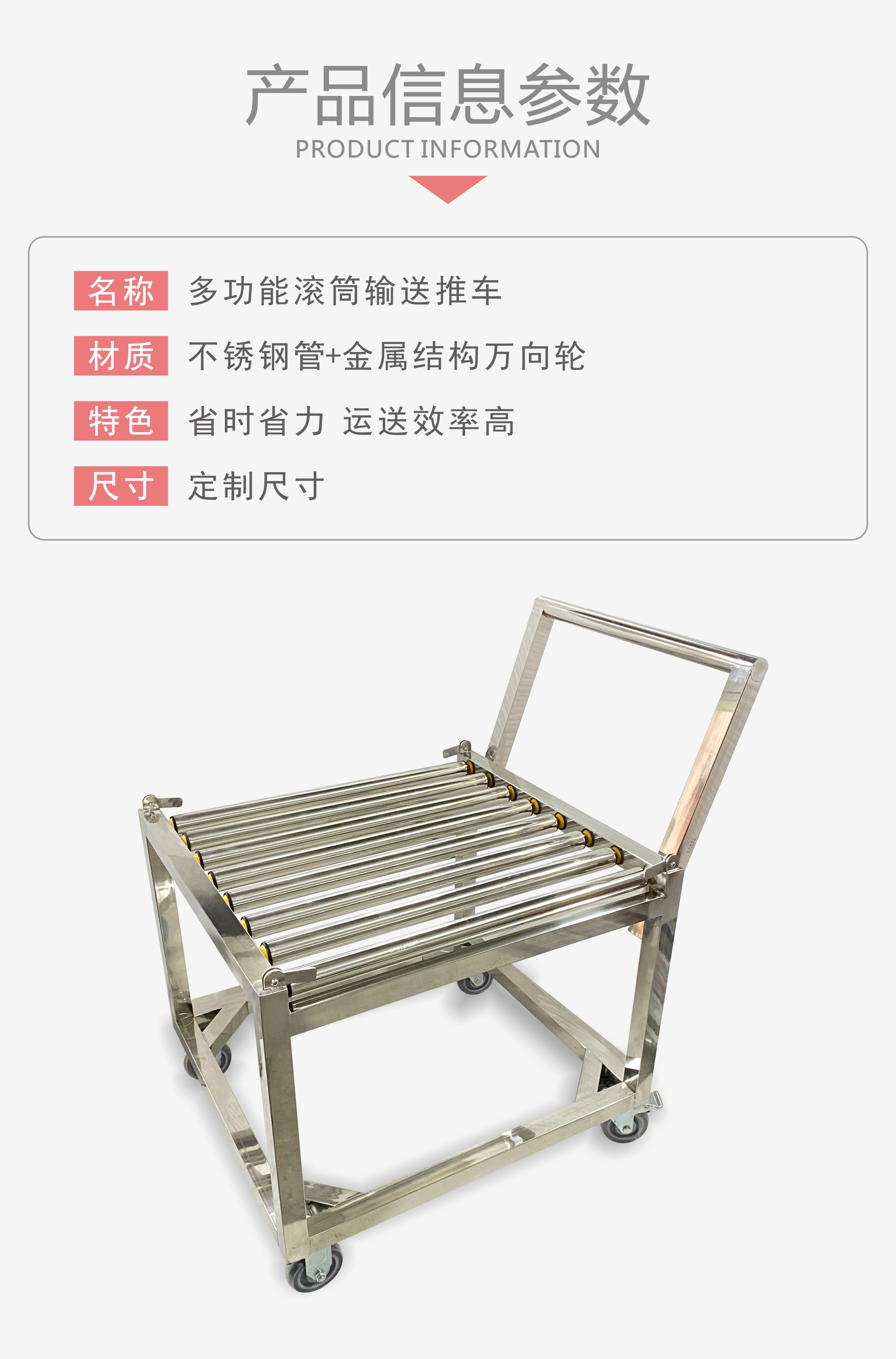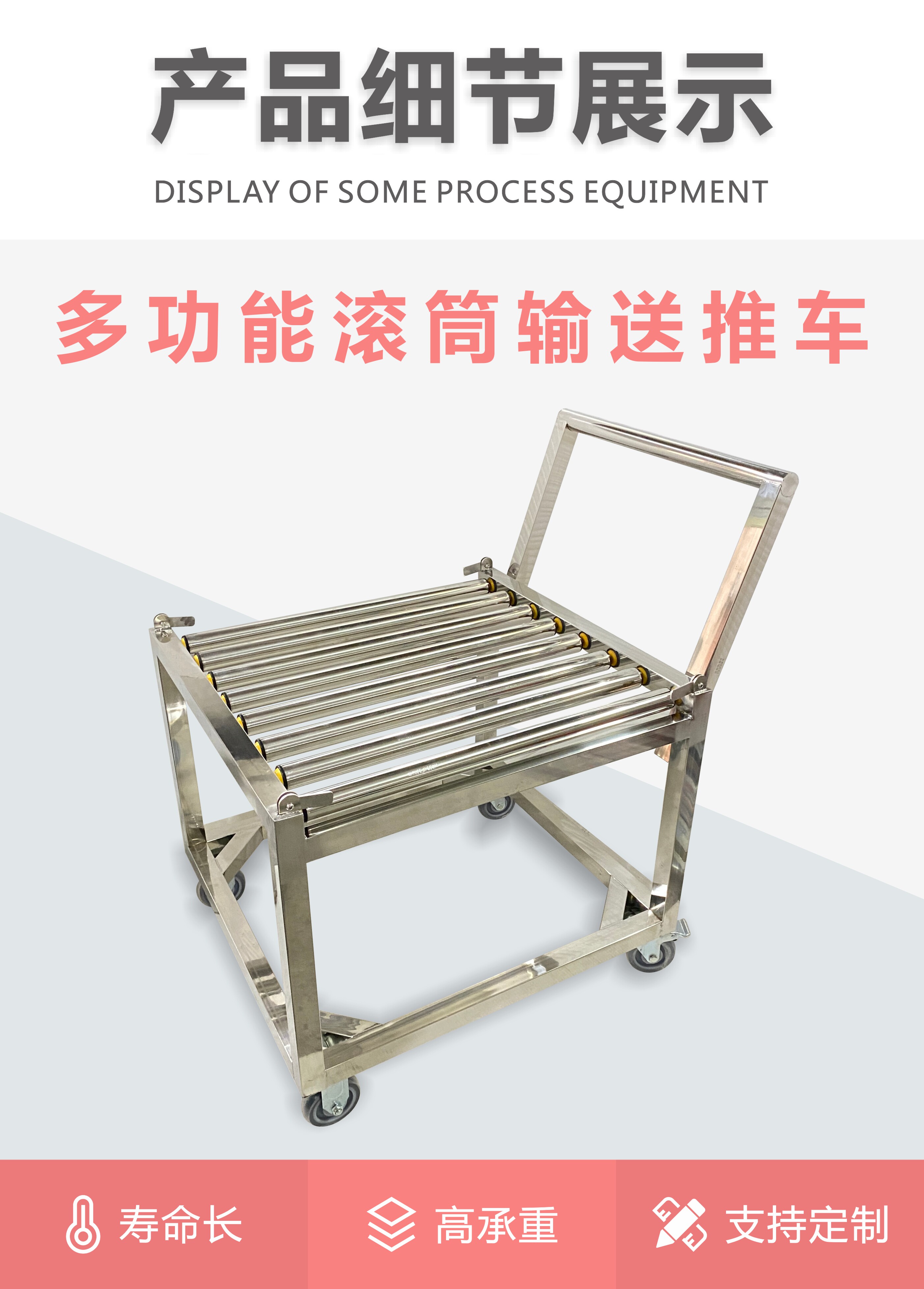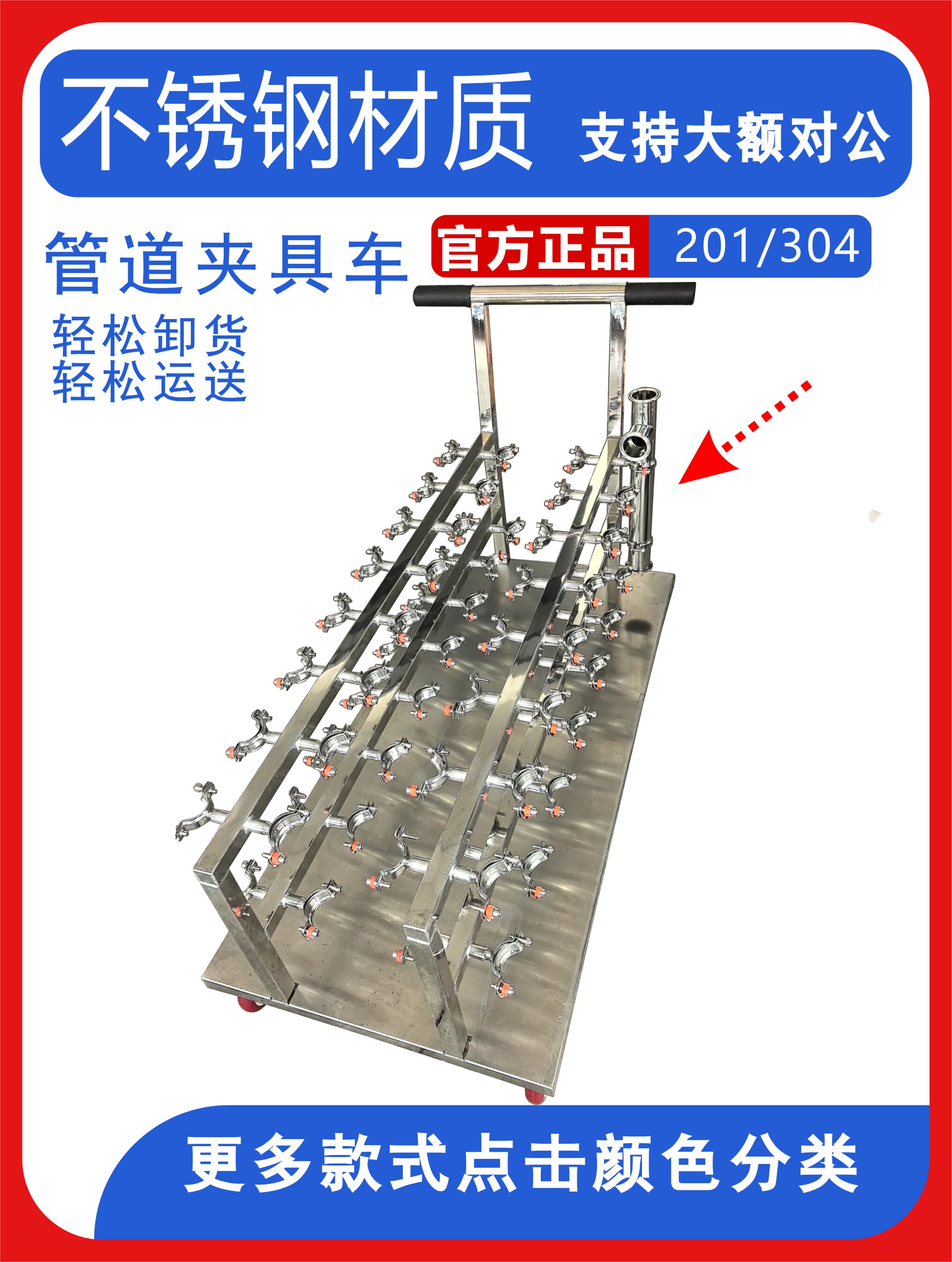 Утолщенный роликовый сердечник без привода, кислотный грузовик, химическая мобильная роликовая тележка из нержавеющей стали, хомут для труб 304