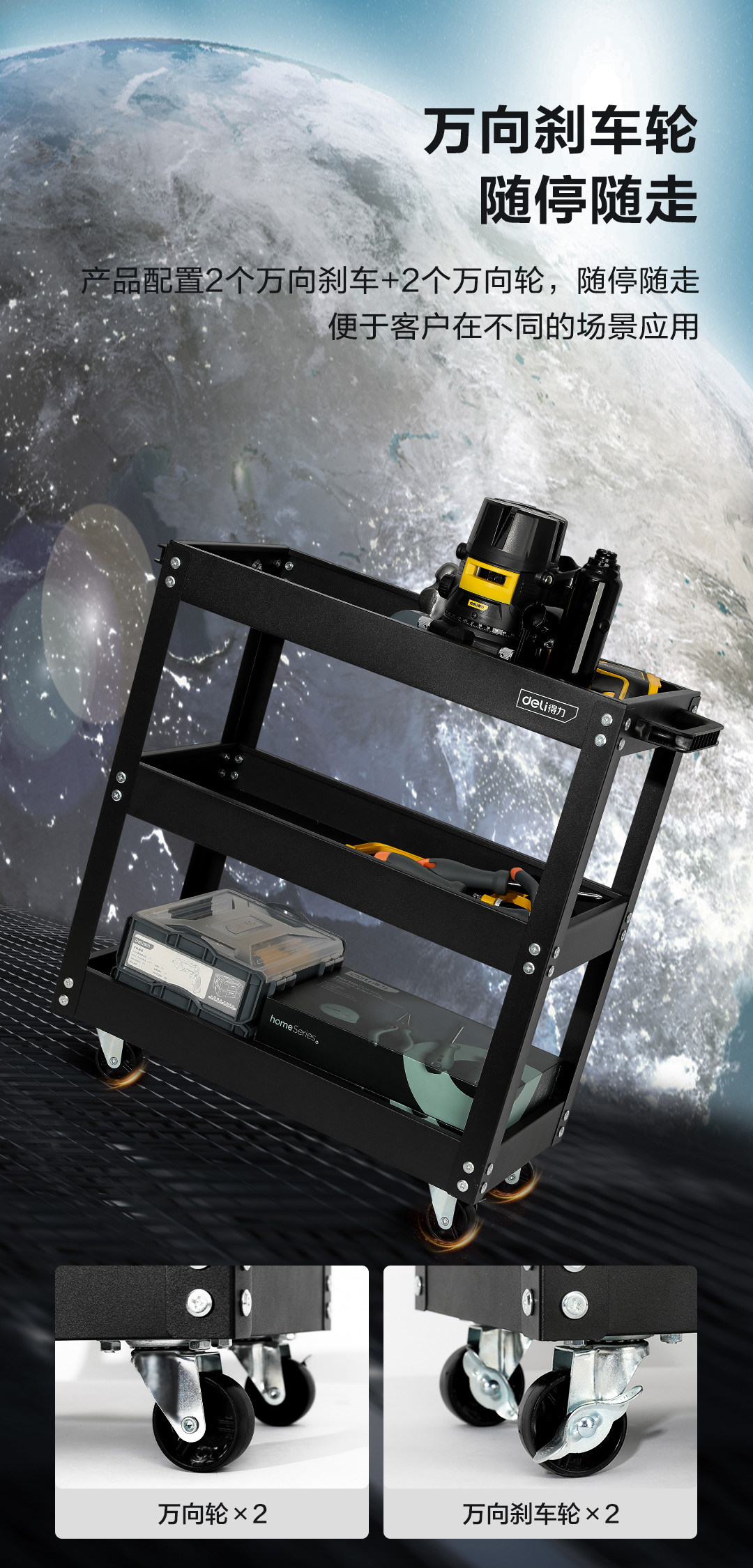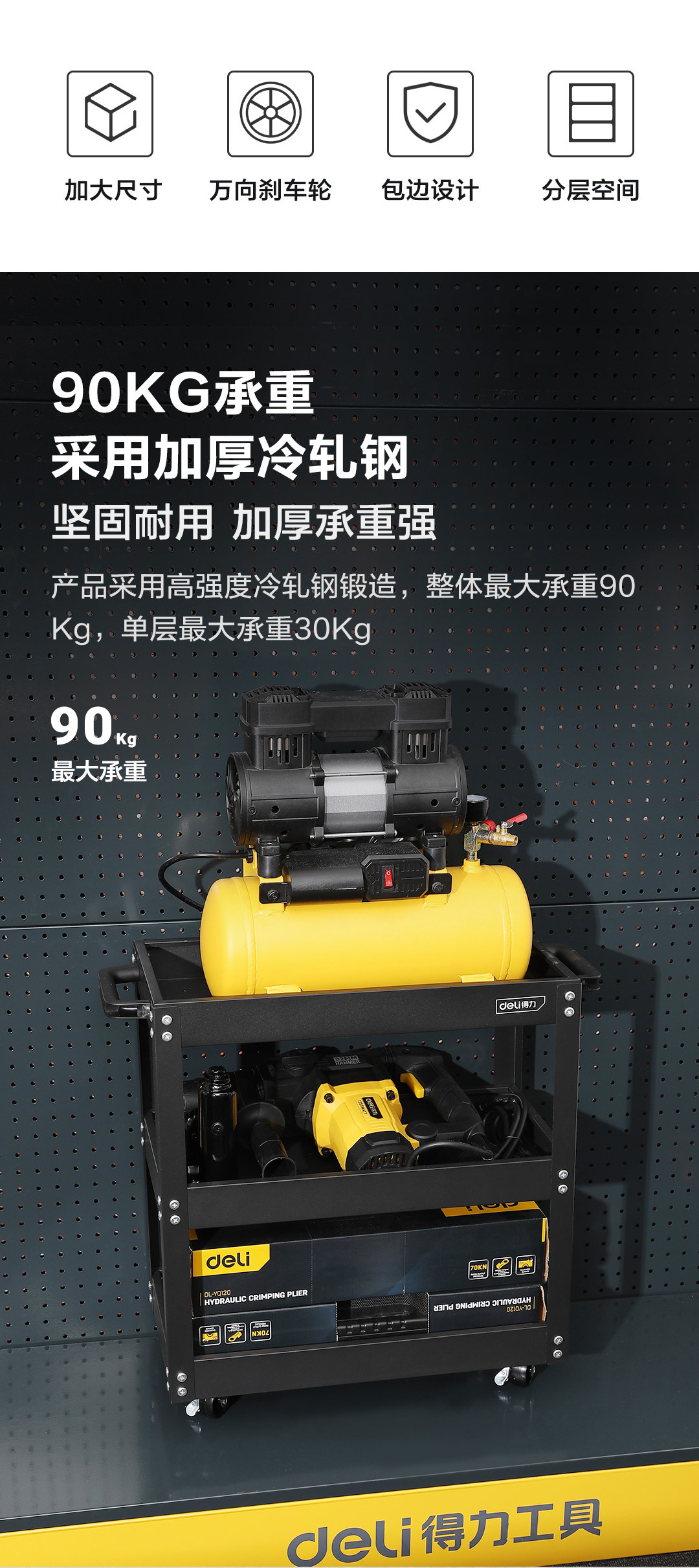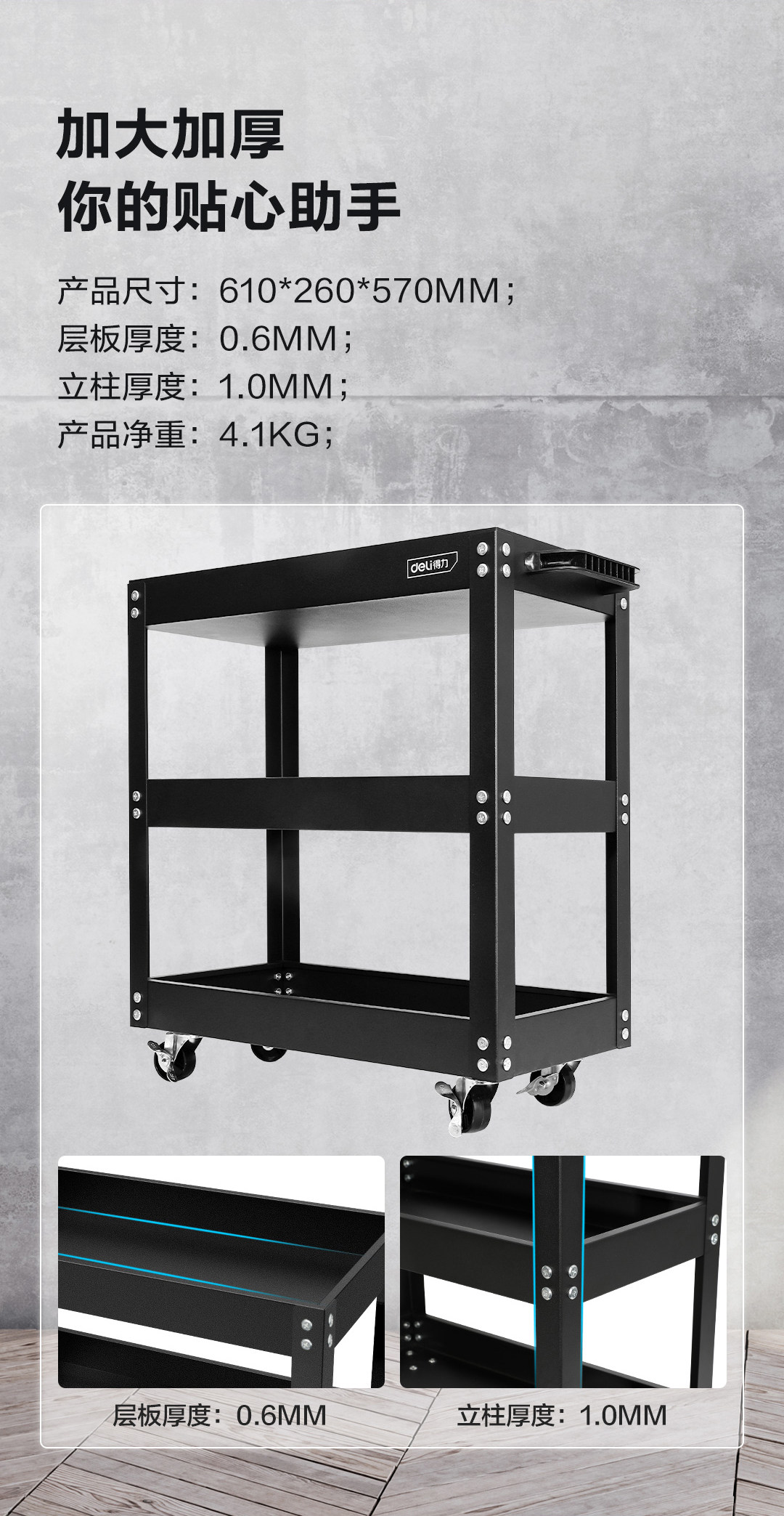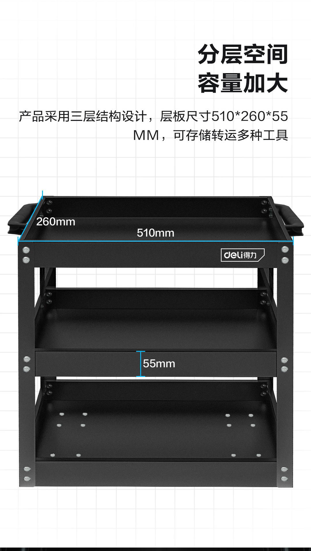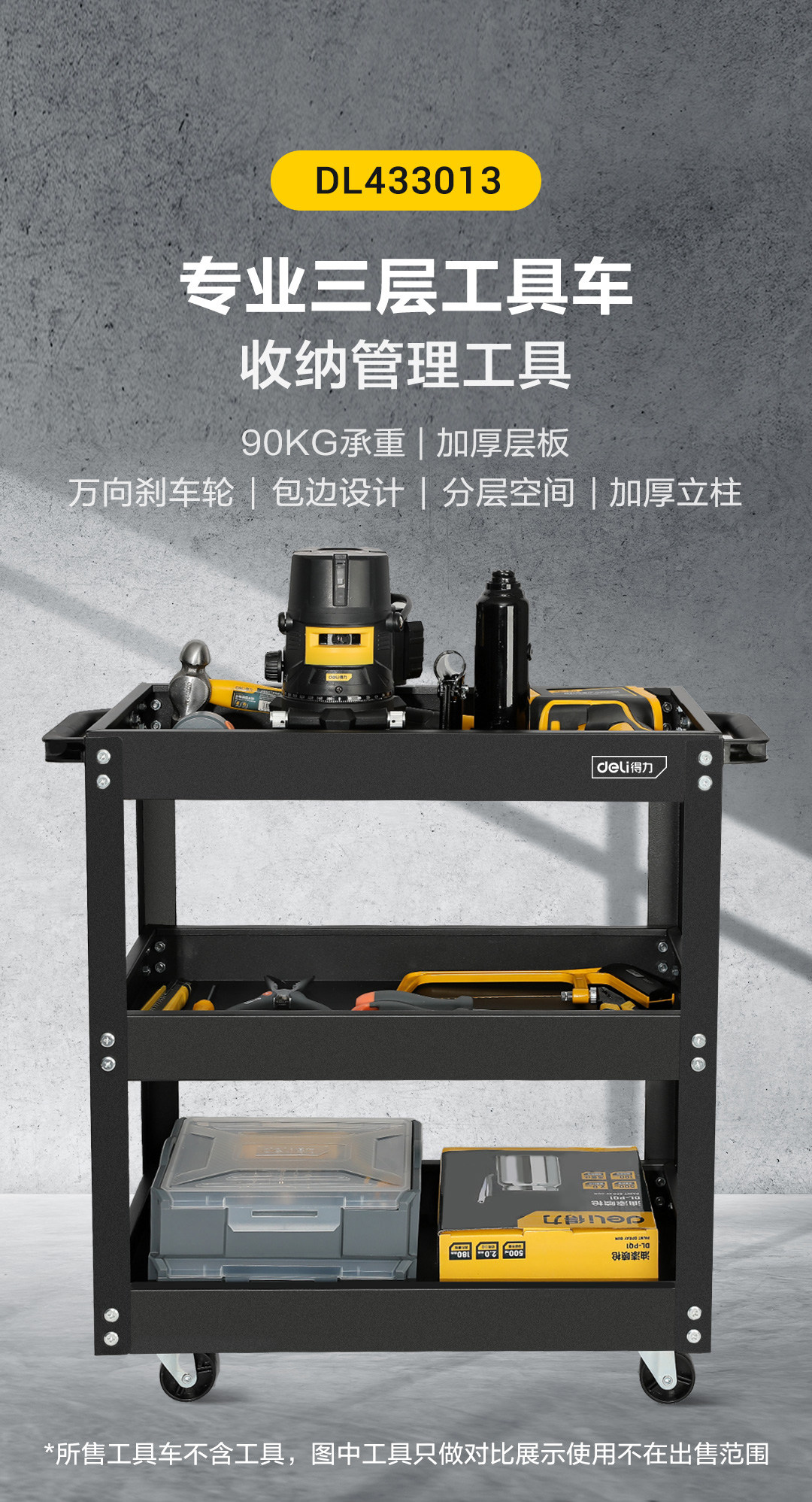 Deli Tools Auto Repair Tools Workshop Многофункциональный трехэтажный хранение Большое пространство удобное мобильное тележку