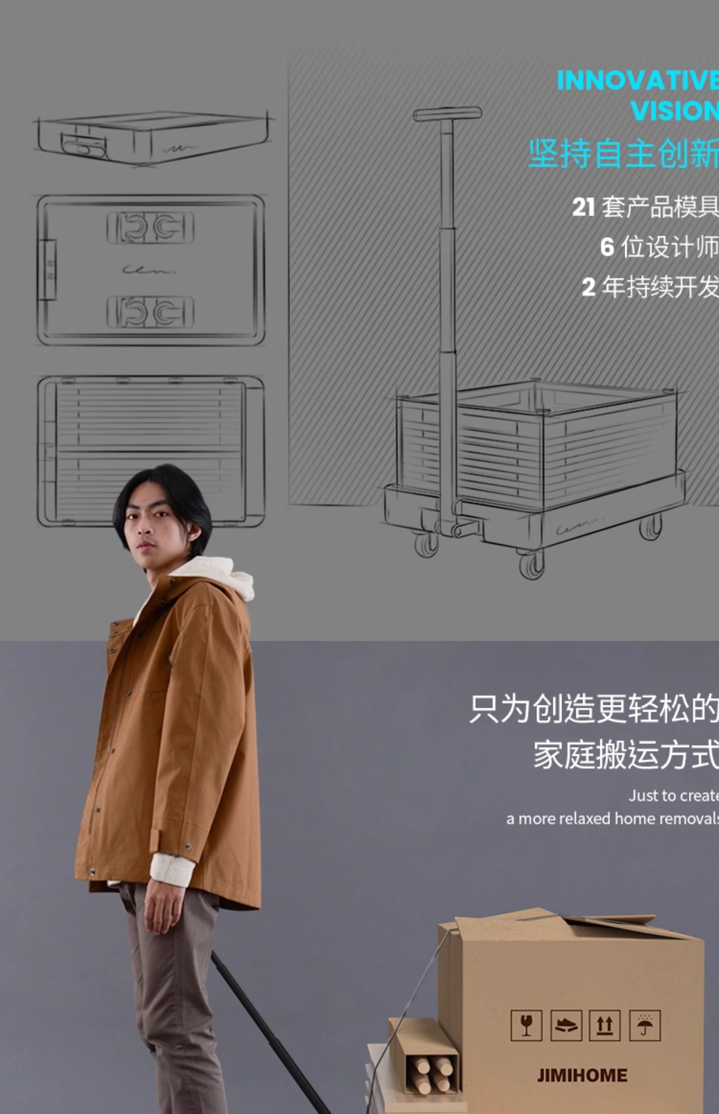 吉米家居 Домашняя портативная складная телескопическая тележка для домашнего использования для переезда