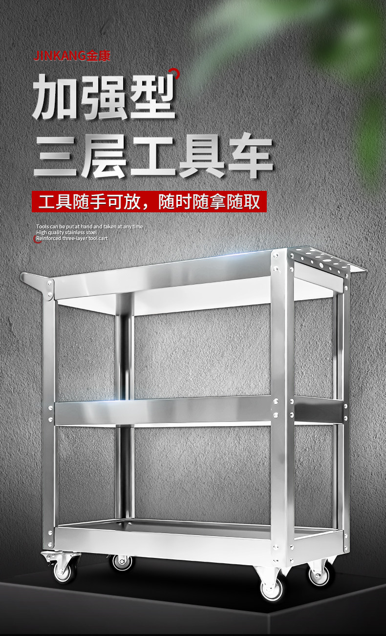 Тележка для инструментов, многофункциональная автомастерская, утолщенный ящик, двух- и трехъярусная тележка для деталей, передвижная полка для хранения из нержавеющей стали.
