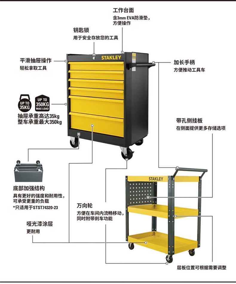 Тележка для инструментов Stanley, авторемонтная тележка, мобильная трехслойная тележка для деталей шкафа, многофункциональная полка для хранения тележек