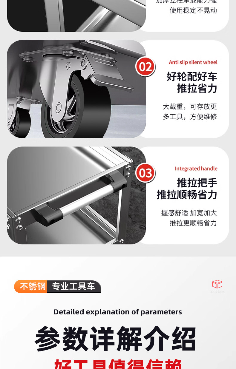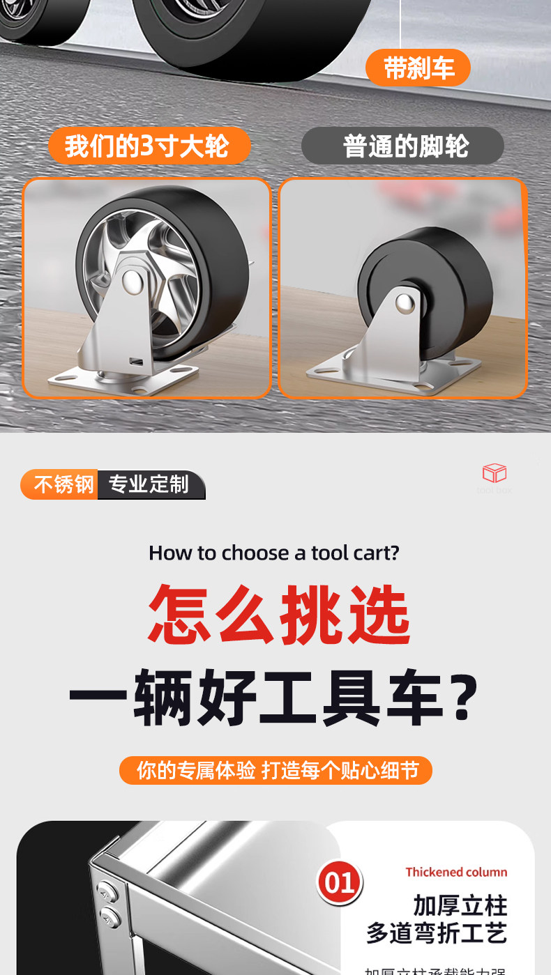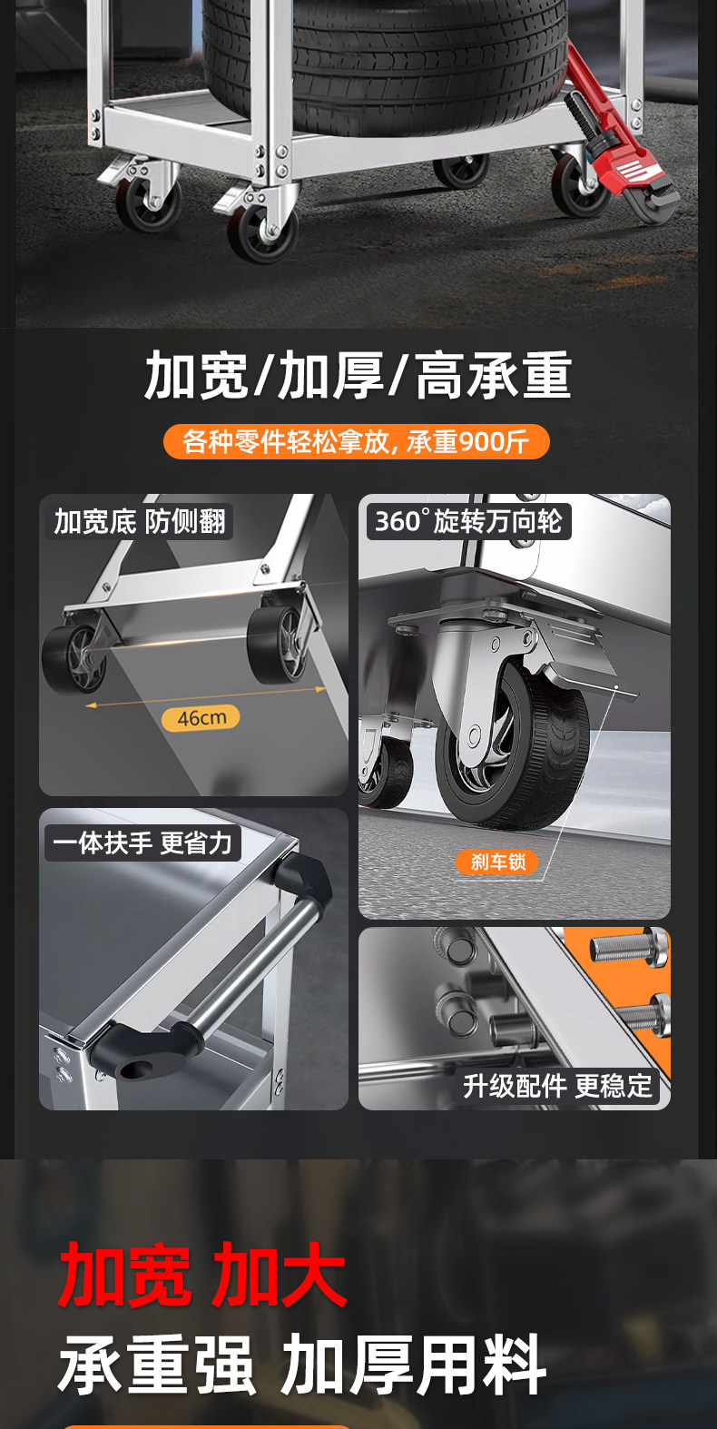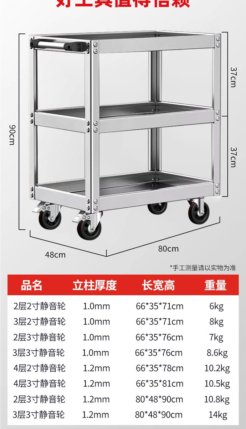 Универсальная тяжелая тележка из нержавеющей стали, увеличенная толщина