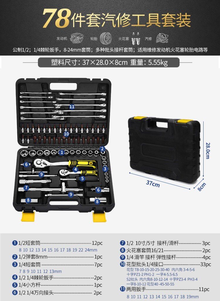 Набор инструментов, гаечный ключ, универсальный комплект для ремонта, полный комплект