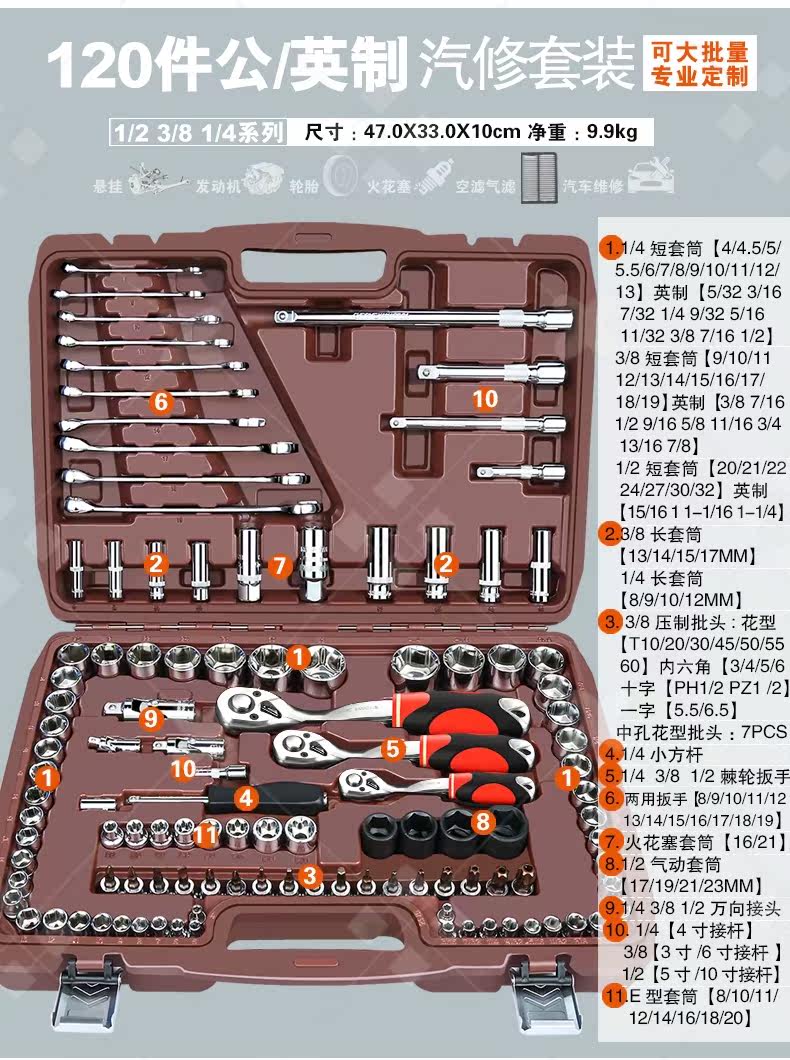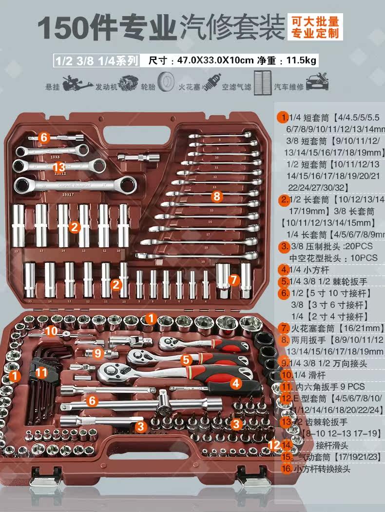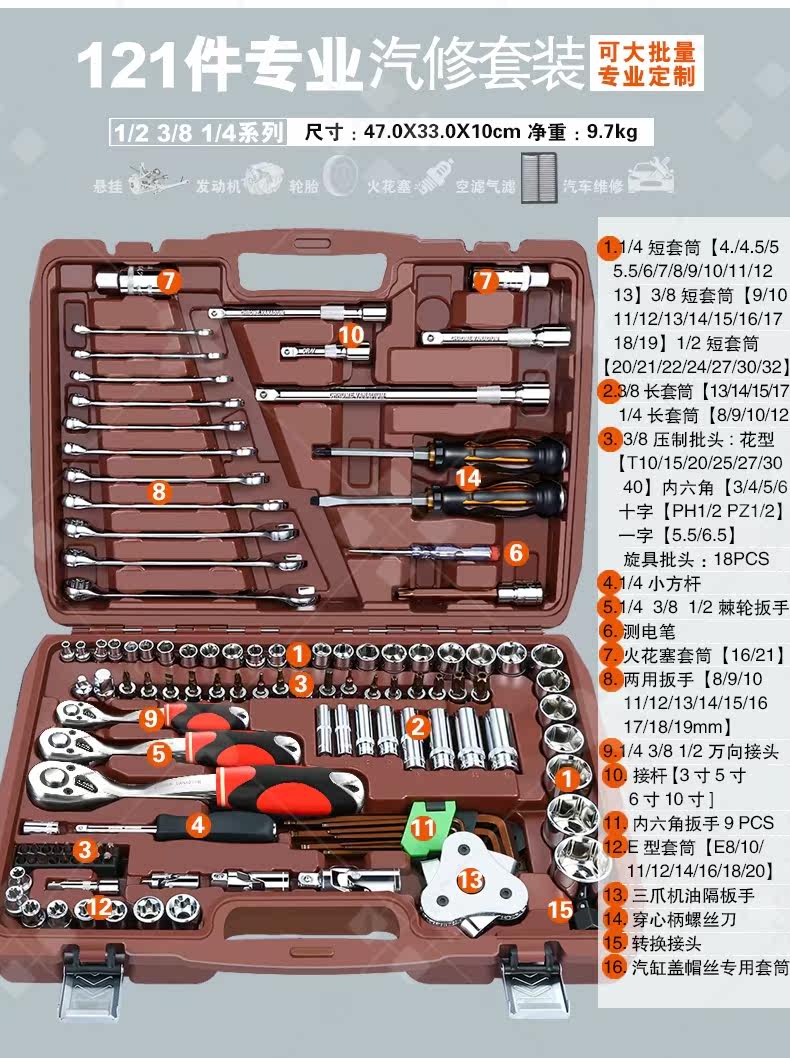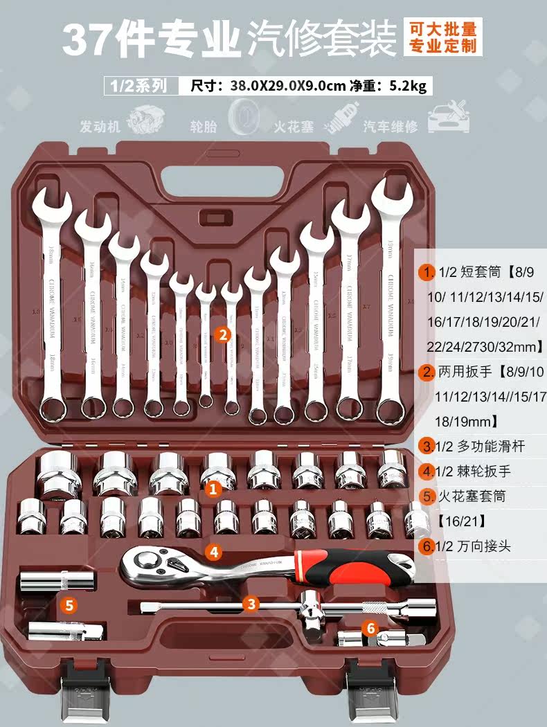 Установка ширины инструмента гаечного ключа Большой комплект автоматического ремонта и технического обслуживания позвоночника