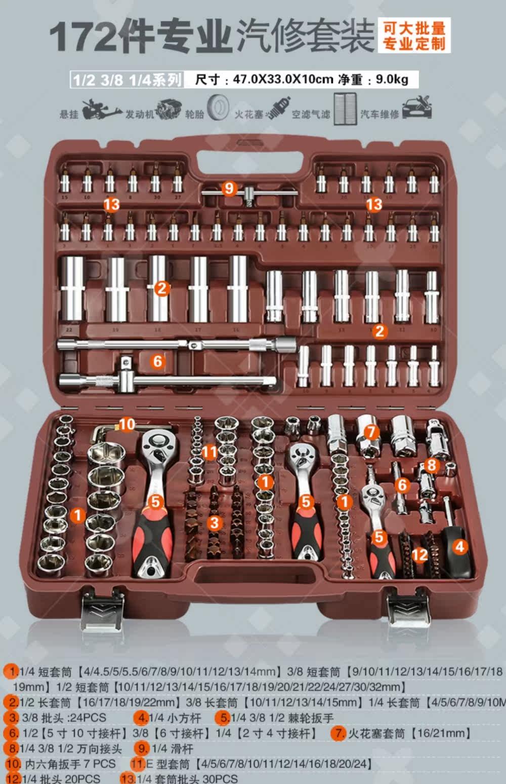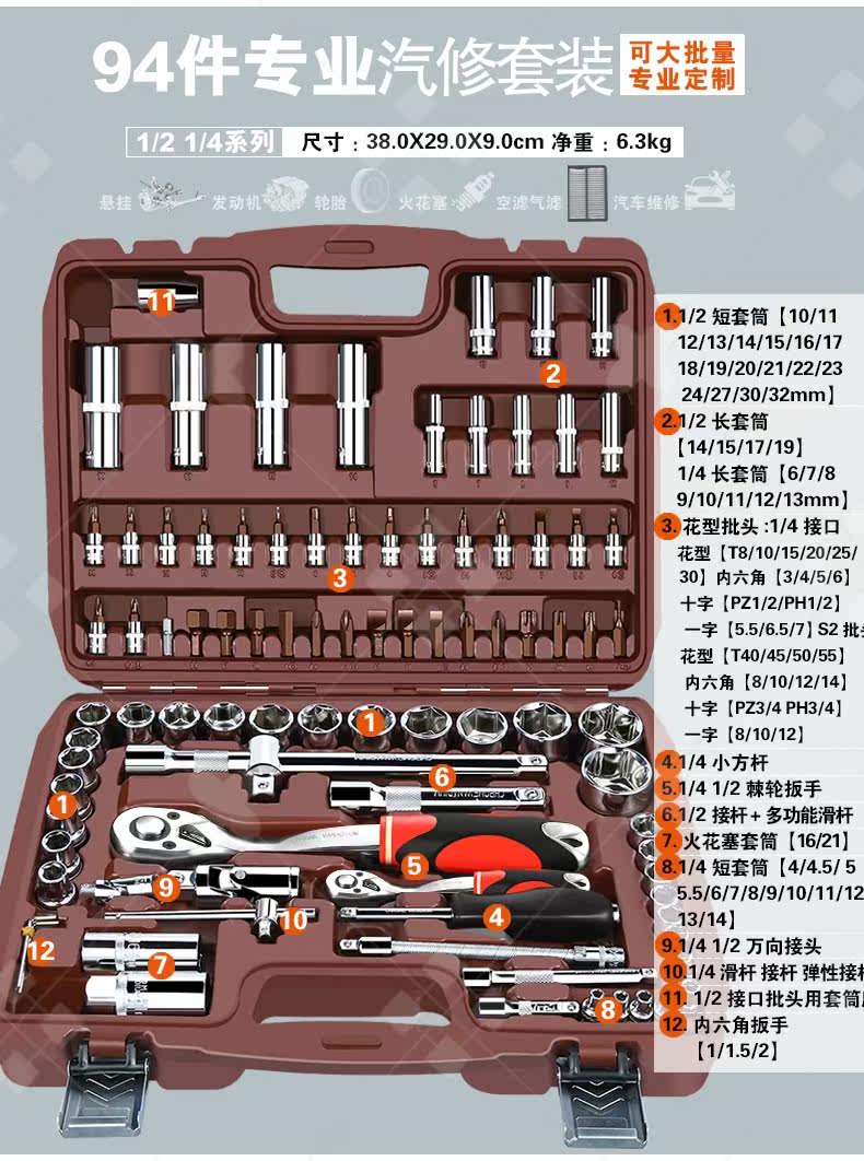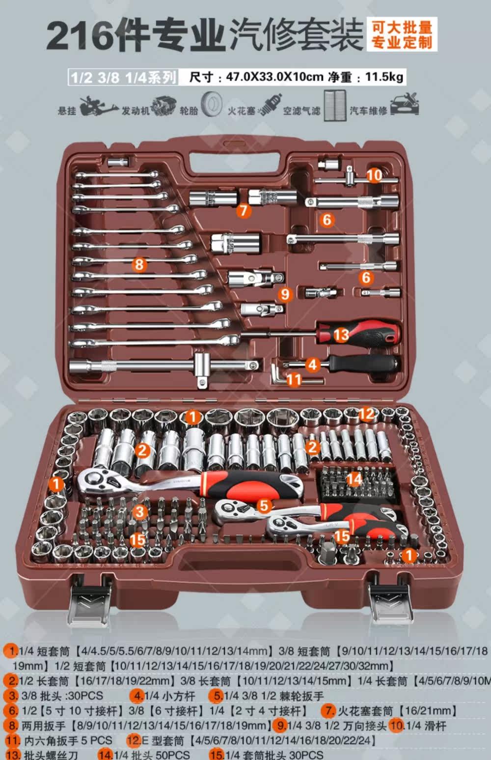 Установка ширины инструмента гаечного ключа Большой комплект автоматического ремонта и технического обслуживания позвоночника