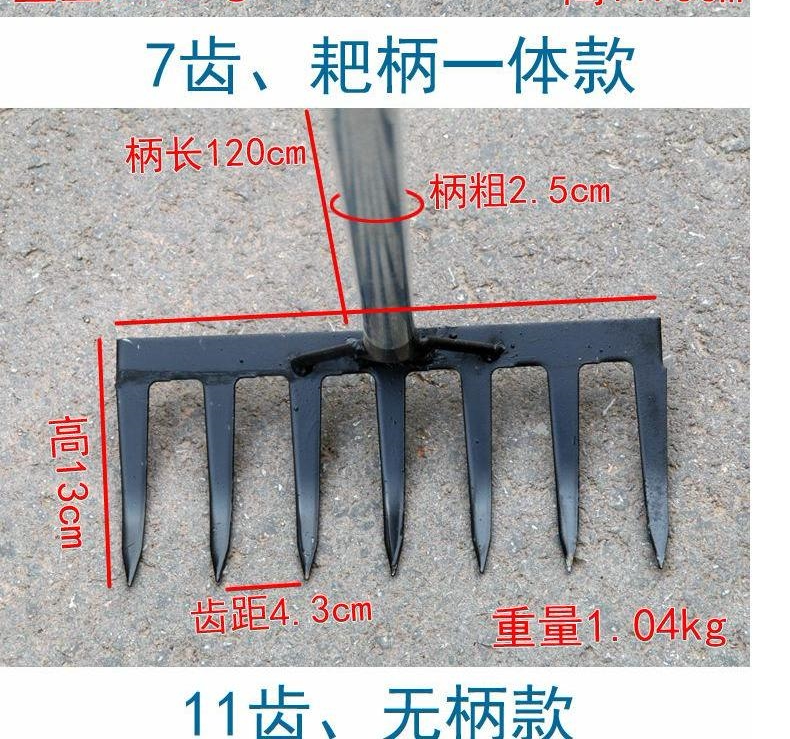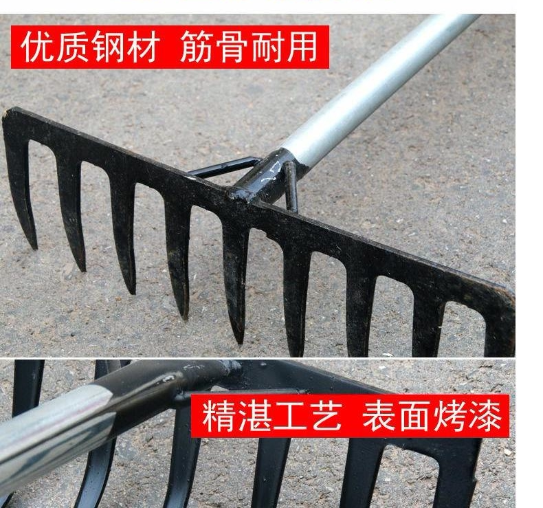 СущностьРубея сельскохозяйственная сосновая земля, стальная сталь, гвозди, гвоздь с травяными, сорняками, мусорные граблей