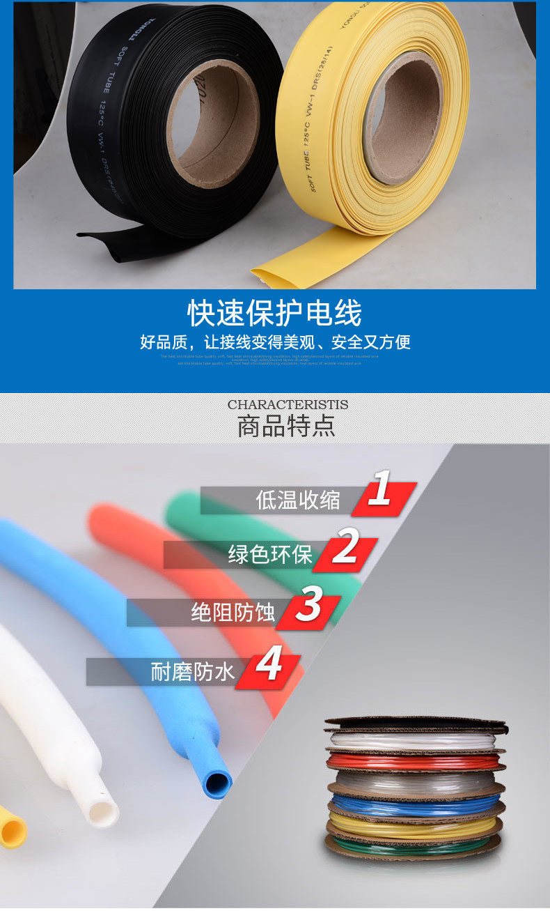 В -четвертых, характеристики продукта: он обладает преимуществами превосходного огнезащитного, защиты окружающей среды, изоляции, мягкости, стабильной производительности, низкой температуры усадки и быстрого сокращения.