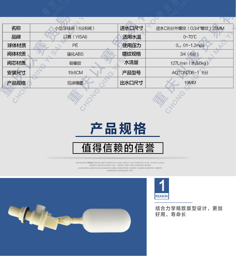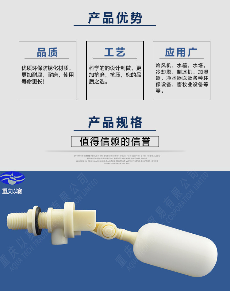 Новый автоматический плавучий шаровой клапан -это обновленный продукт, разработанный на основе новой технологической платформы, и полностью преодолевает множество дефектов традиционных прямых продуктов. В то же время использовалось всеобъемлющее преимущество в инженерных пластиках, низкокачественное, качественное, качественное Низкий образ жизни.По сравнению с традиционными прямыми медными или нержавеющими медными продуктами, этот продукт имеет следующую большую ценность продукта: