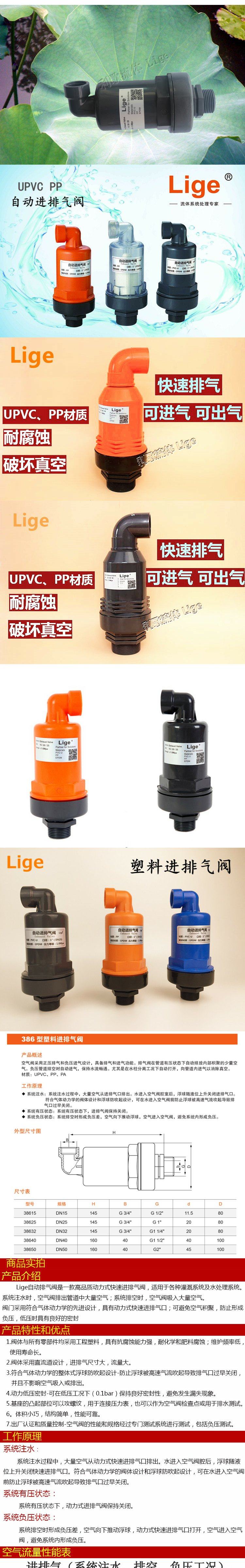 Выхлопной клапан UPVC PP PVC Пластичный автоматический воздушный впускной клапан Пластиковый газовый клапан клапан впускной клапан