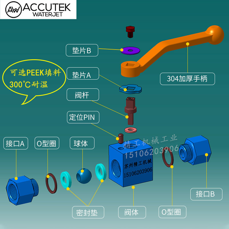 - 304 Внутренний шелковый шаровой клапан 3/8 = 3 балла температурная сопротивление 300 ℃