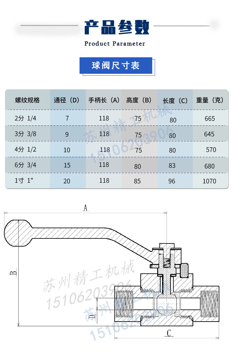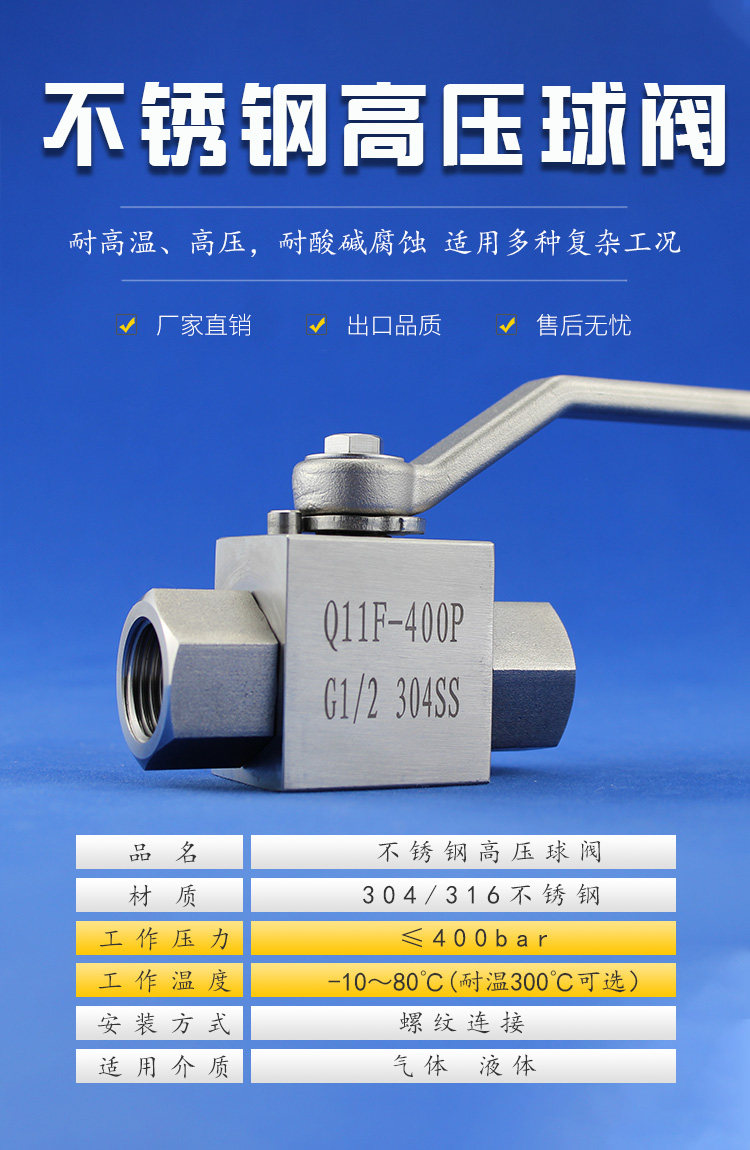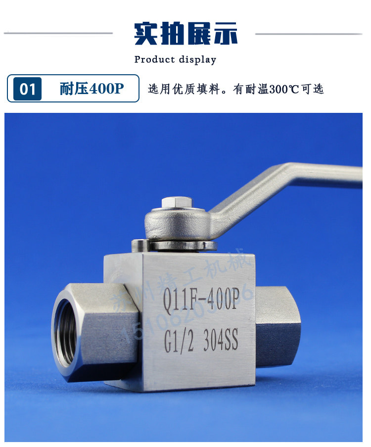 - 304 Внутренний шелковый шаровой клапан 1/2 = 4 балла температурная сопротивление 300 ℃