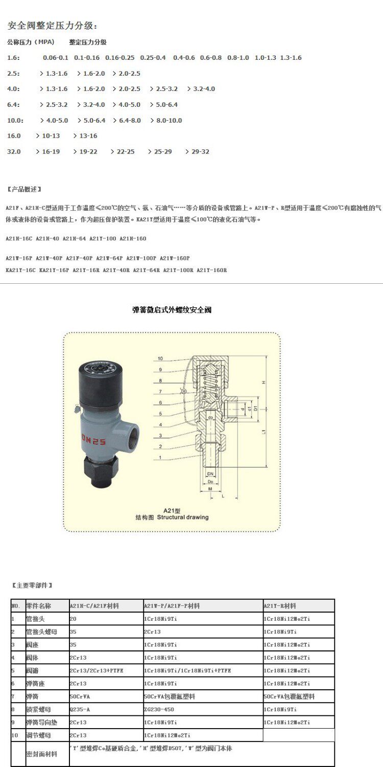 KA21Y-16C противосерный предохранительный клапан из литой стали с резьбой DN10 15 20 25 32 40 50