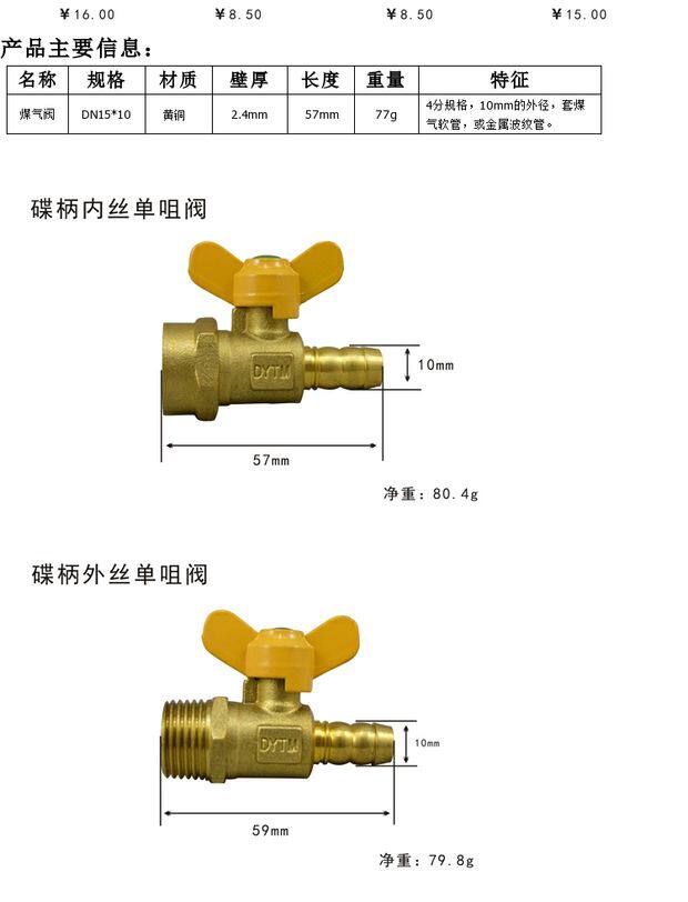 Газовая бабочка ручка шариковые клапаны 4 точки внутри и снаружи шелковые водонагреватели переключайте диаметр переменного диаметра DN15, непосредственно подключенный к медному клапану с природным газом.