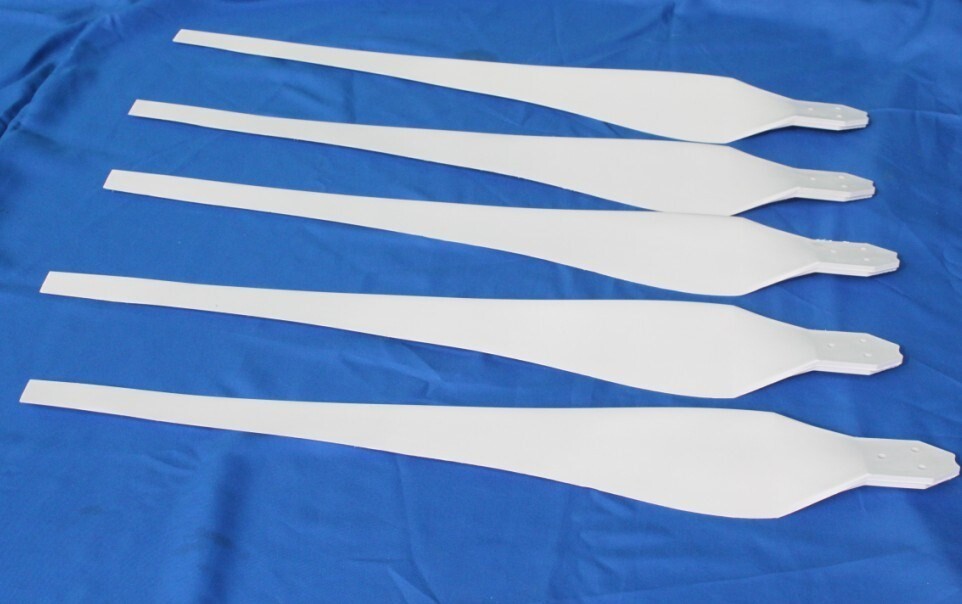 Этот лезвие посвящено вентилятору 400W-800W, а диаметр лезвия составляет 1,85 метра.Радиус составляет 0,9 метра, чистый вес одного лезвия составляет 470 граммов, три листика из чистого веса ветровой папки плюс колеса составляет 2170 граммов, а чистый вес пяти листовых колес составляет 3240 грамм.Материалы листьев изготовлены из композитных материалов для прочных проектов смешивания нейлоновых волокон, которые устойчивы к коррозии, высокой прочности и гарантии в течение двух лет.