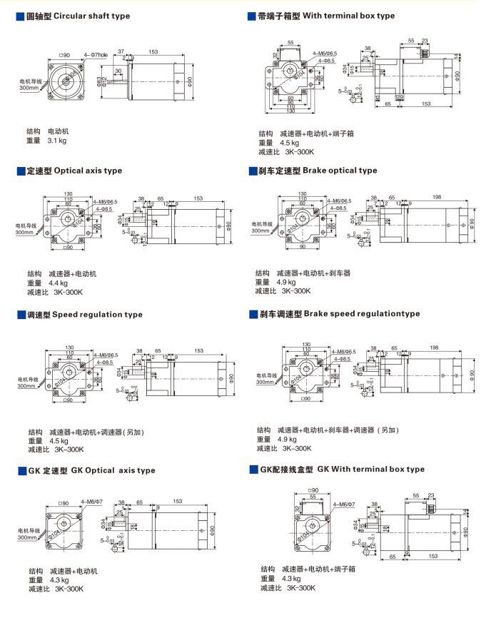 Мотор с шестернями, 90W, 120W, 220v, 380v, 110v