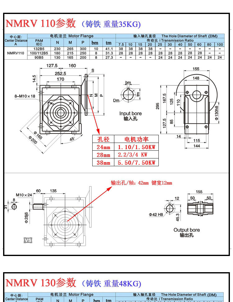- NRV110 (выход 42, диаметр оси 28)