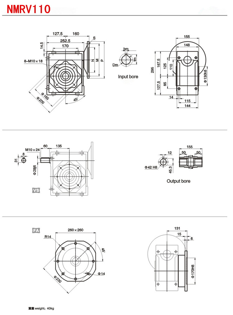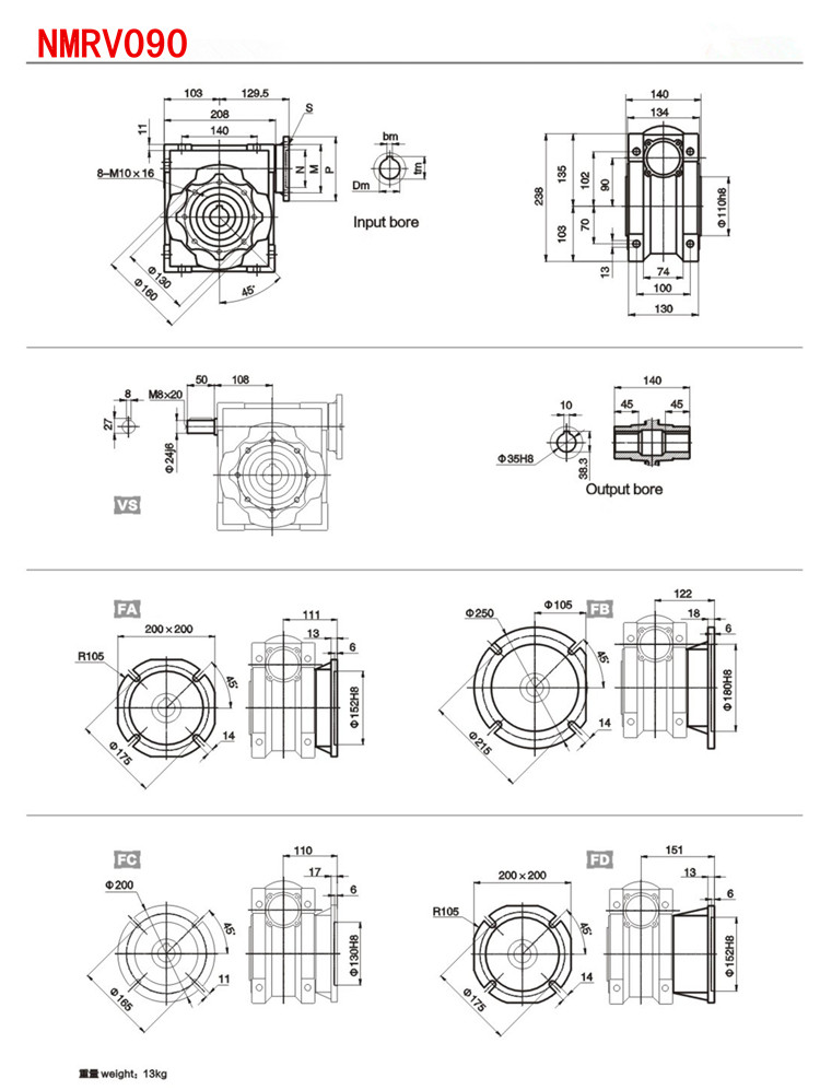 RV Series Reducer, вход вала, модель NRV25-NRV150