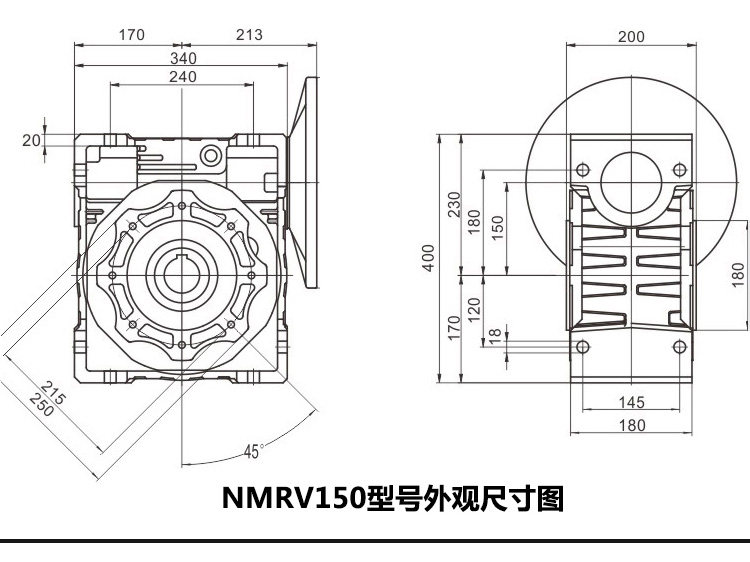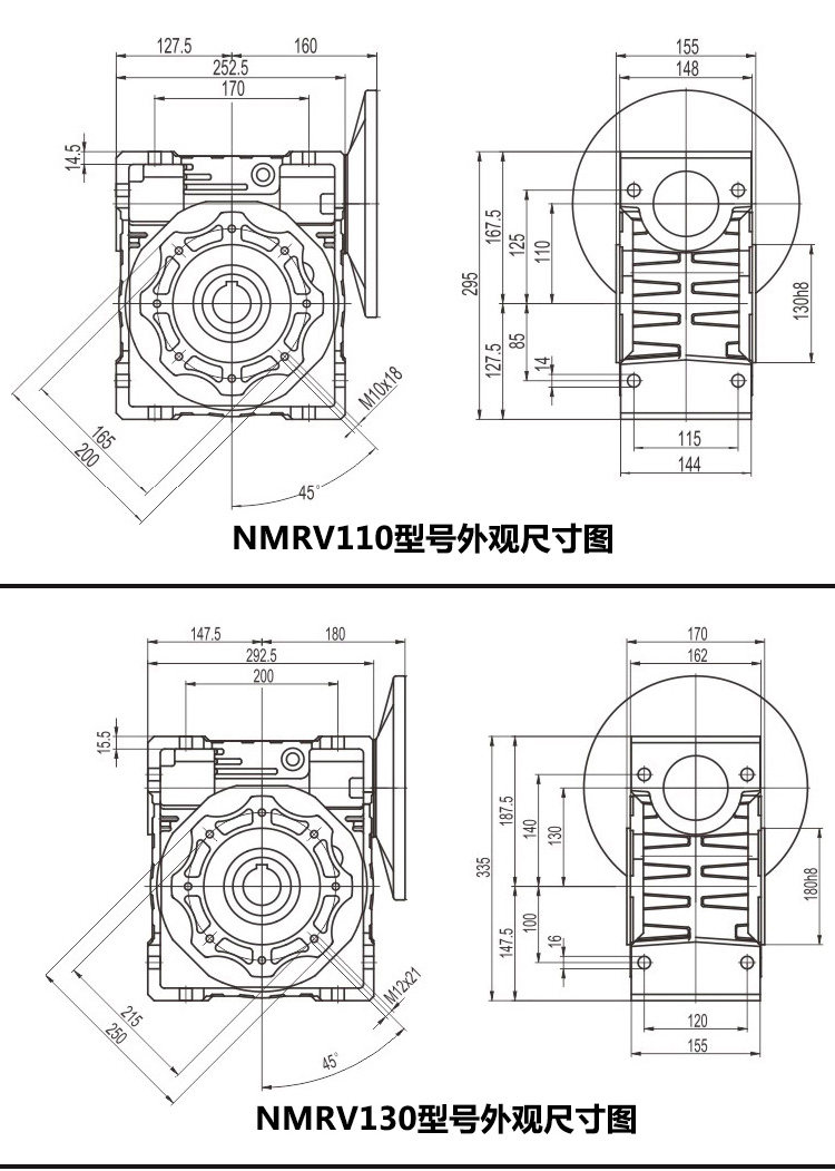 - NMRV130 (чугун), выходное отверстие для вала 45