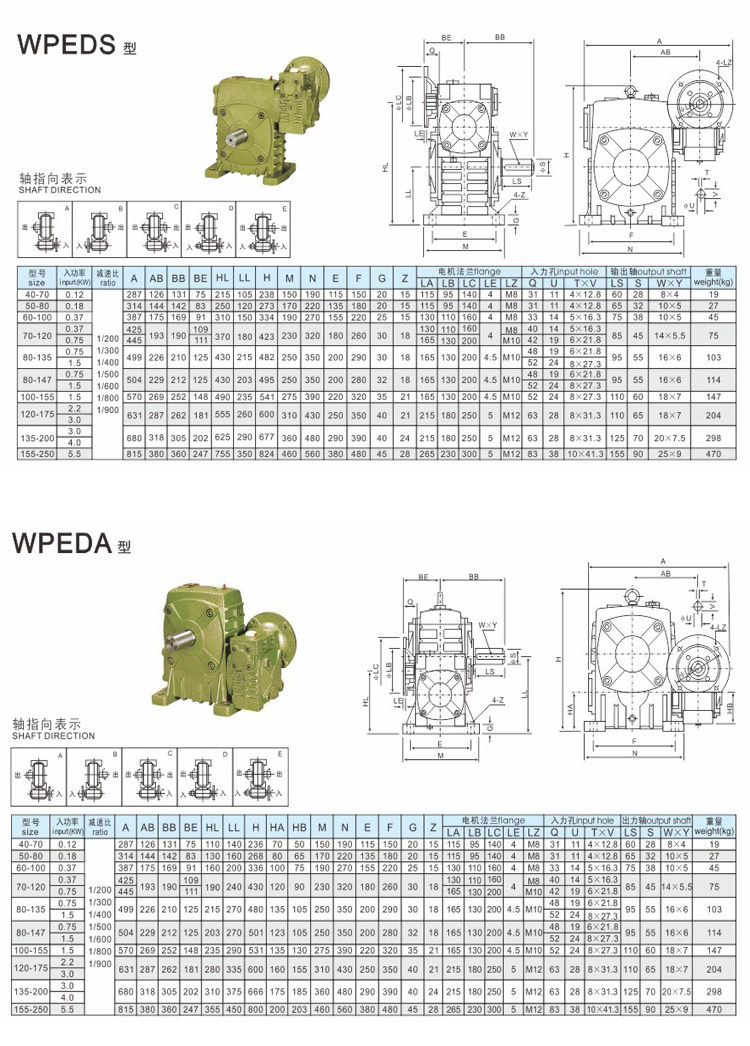 Wpeds Turbine Worm Brok Machine с коробкой для двигателя wuda Reducer Небольшой вертикальный двойной уровень