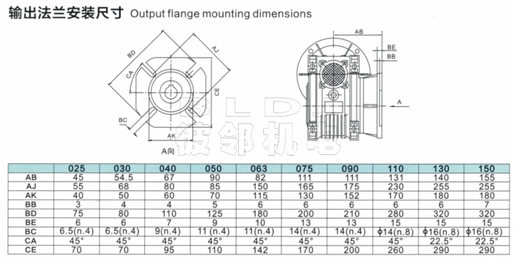 - RV075 Выходной вал/крутящий момент/выходной фланк