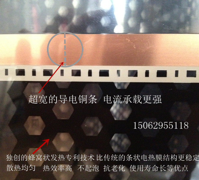 Honeycomb -подобная электрическая пленка, новейшая технология технических технологий, технология анти -огня, ведущая корейская технология, новая пленка с соты на электрическом отопленииИспользуйте научную и разумную трехмерную структуру нагрева в форме сотыЭффективность тепла электрической нагревательной мембраны выше, рассеяние тепла более равномерно, область рассеивания тепла велика, а эффективность тепла является большей энергией и способствует мощности.Дизайн трехмерной нагревательной структуры в форме соты является более научной и надежной, и она в большей степени соответствует физическим характеристикам молекулярного движения углерода.Это более способствует среде распределительного движения молекул углерода, тем самым исключая возникновение плохих явлений, таких как поли нагрева, полимеризация и пузырьки в электрической пленке.Трехмерная структура отопления позволяет избежать всех недостатков традиционных полосовых продуктов с тепловой пленкой.Условия окружающей среды гладкие и равномерные, а нагрев стабильный и равномерный. Срок службы традиционной полосовой образованной нагревательной пленки принципиально расширен.