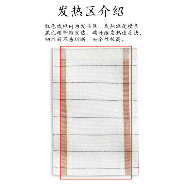 4Безопасность. В той же области нагрузки тока прочность углеродного волокна в 6-10 раз выше металлического провода, и он не будет ломаться во время использования.Поскольку углеродное волокно является сетчатым тепловым телом, даже если один разрыв сломается, оно не повлияет на общую мощность.горячий.И сломанная часть, температура поверхности при 60 ° C, не дает дуги, которая эффективно устраняет возникновение несчастных случаев, таких как огонь;