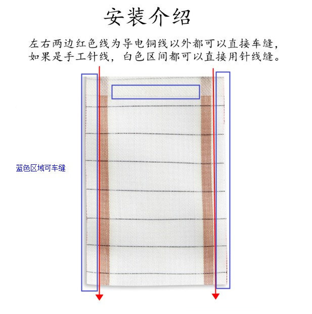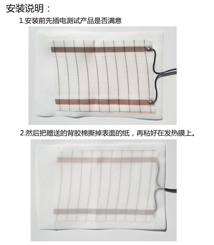 Получите его с защитной бумагой хлопка с жвачкой на нагревательной мембране, а затем швей для шва на одежде. Нагревательная пленка не может быть сшита непосредственно. Поставьте нагревательную пленку в небольшой карман.