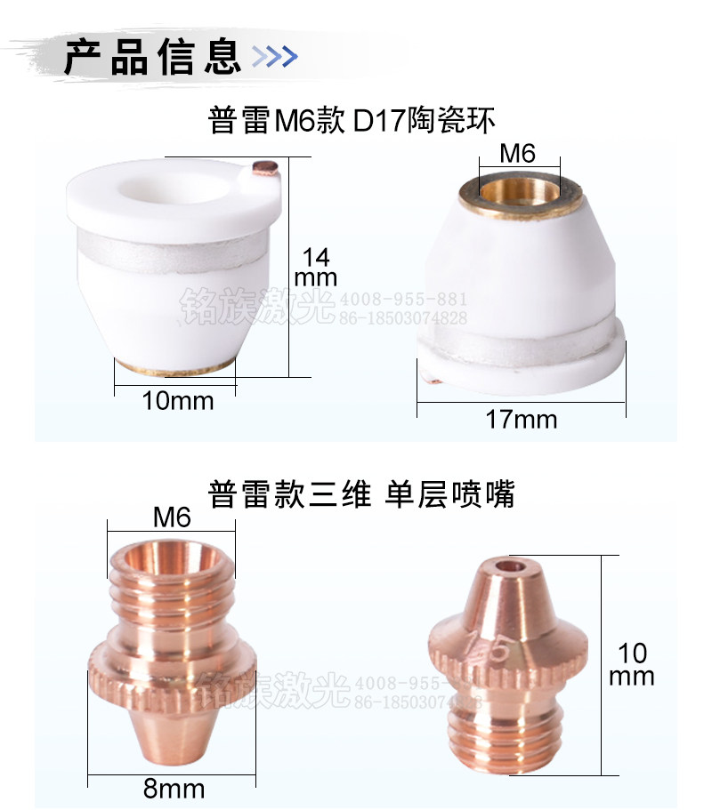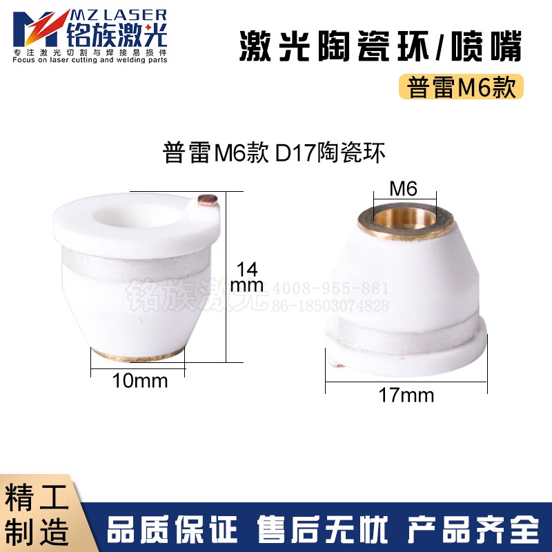 Лазерное керамическое кольцо M6, сопло для резки волокна, трехмерный керамический корпус, медное сопло, подходящее для D17, высота 14,2 мм