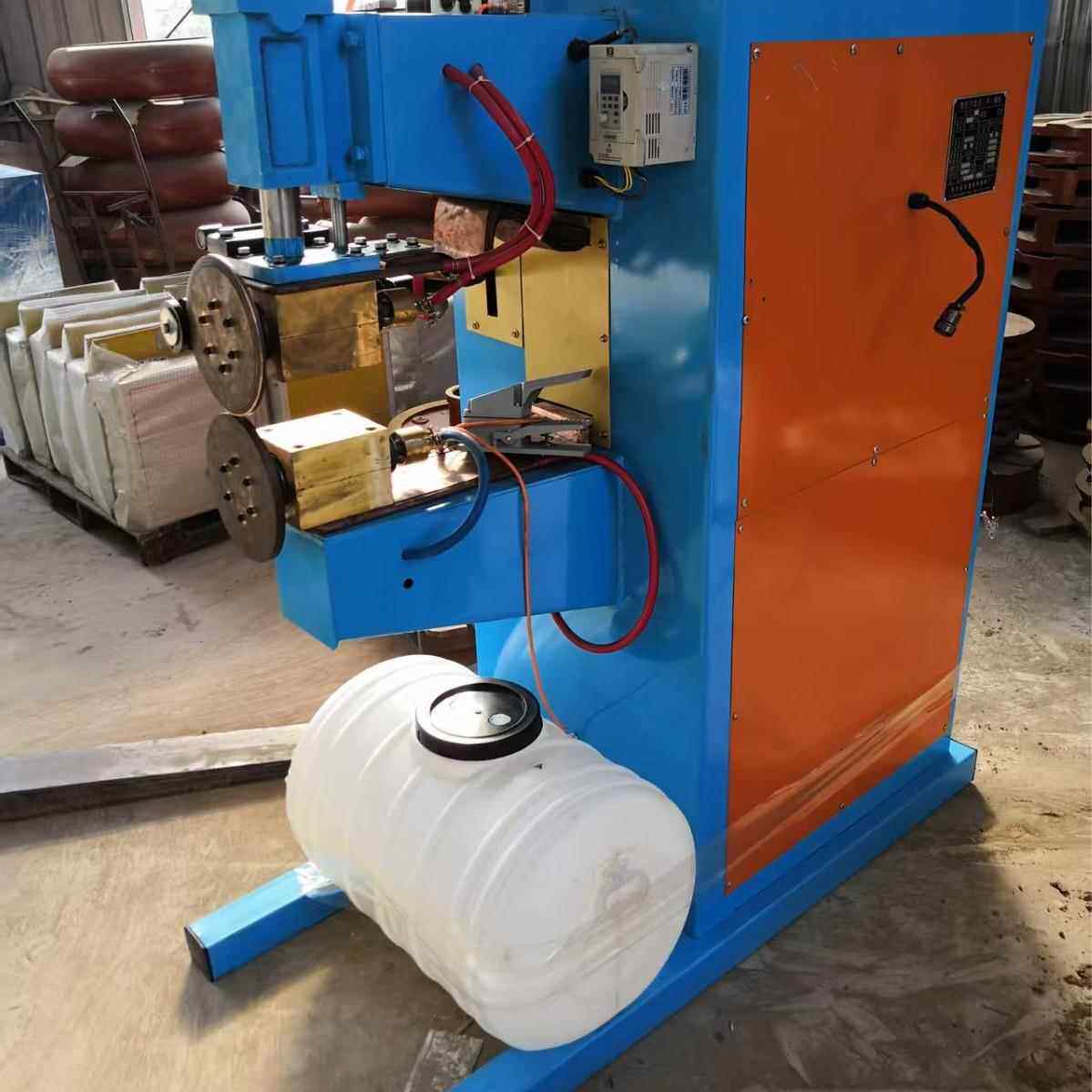Автомат для сварки прямых швов металла. Аппарат для среднечастотной сварки швов. Сварочное оборудование. Вертикальный аппарат для шовной сварки оцинкованных листов сопротивлением переменного тока.