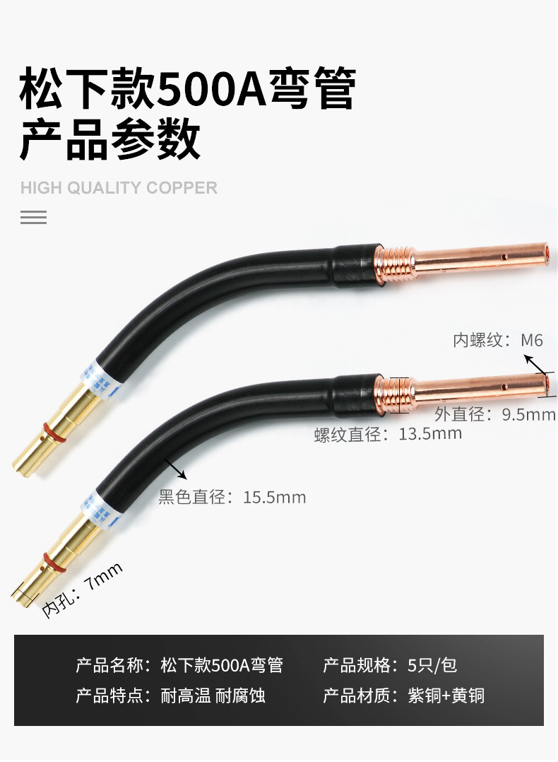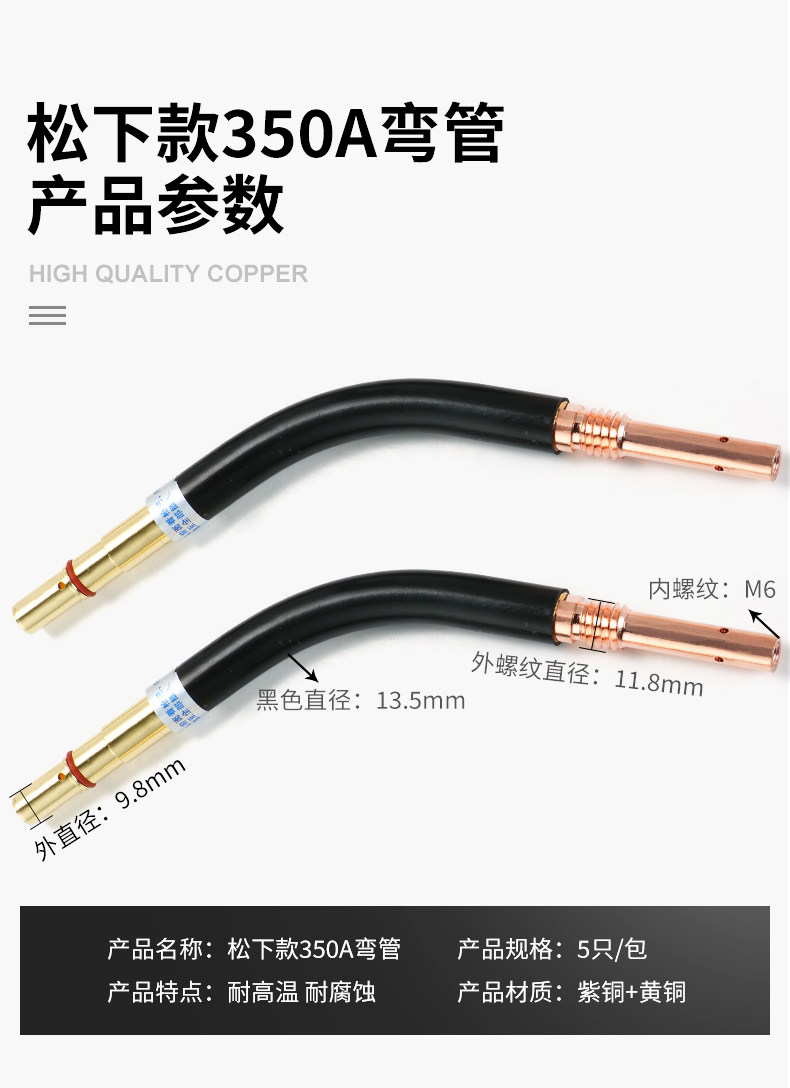 Защита от газа Songle Panasonic 500 Двух- гарантированные сварочные запасные детали горелки, ствол ствола, изгибающая шейная шейка с изгибающей трубкой