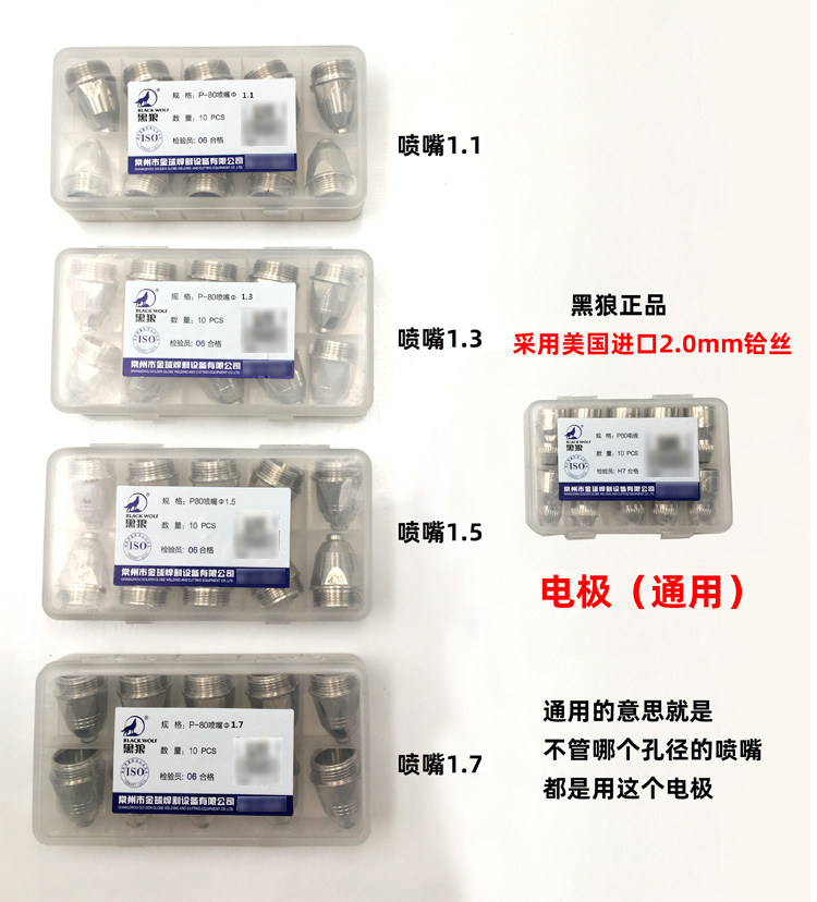Black Wolf P80 Electrode сопла LGK100 CNC Плазменные аксессуары для резки пистолета 铪 铪 шелковый электрод Черный волка реза