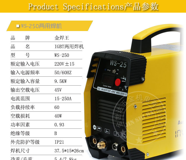 Золотая сварка король WS-250 Современные сварные дуговые сварки двойной смены DC All-Copper из нержавеющей стали Домохозяйство.