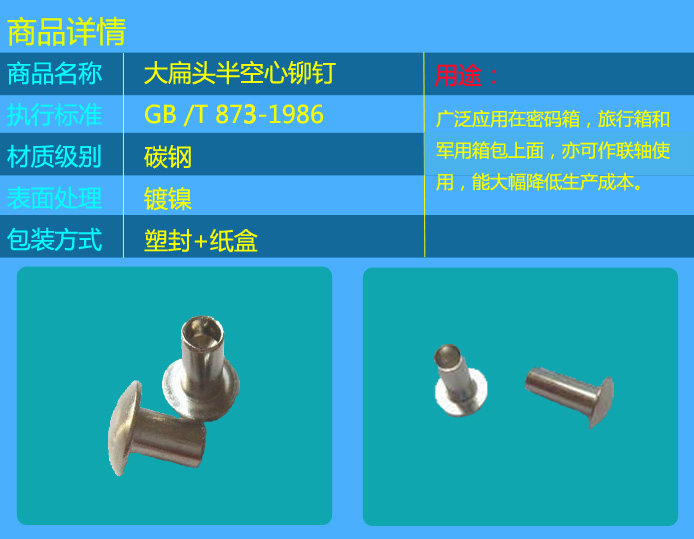 3 мм большая плоская головка половина воздушного сердца заклепки/никеля -плановая полу -эмпти сердцевины 3x3/4/5/6/7/8/10/12 ~ 40
