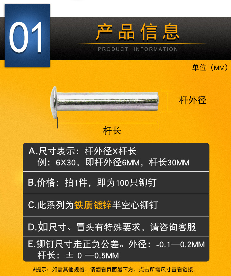 5 -миллиметровый Halway Heart Iron Brivet 5*50 плюс длинные заклинание национальный стандарт GB873 Железный оцинкованный средний
