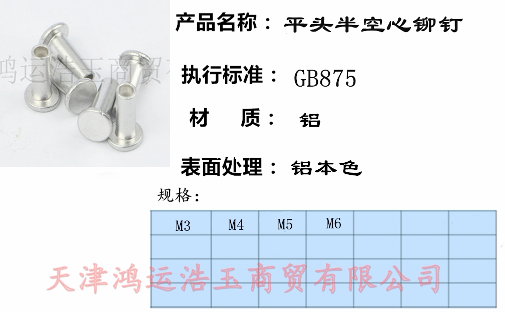 Gb875 Плосколобая алюминиевый сердечный заклепки алюминиевый полупутный заклепка φ3φ4 φ5φ6*10/12/16-30